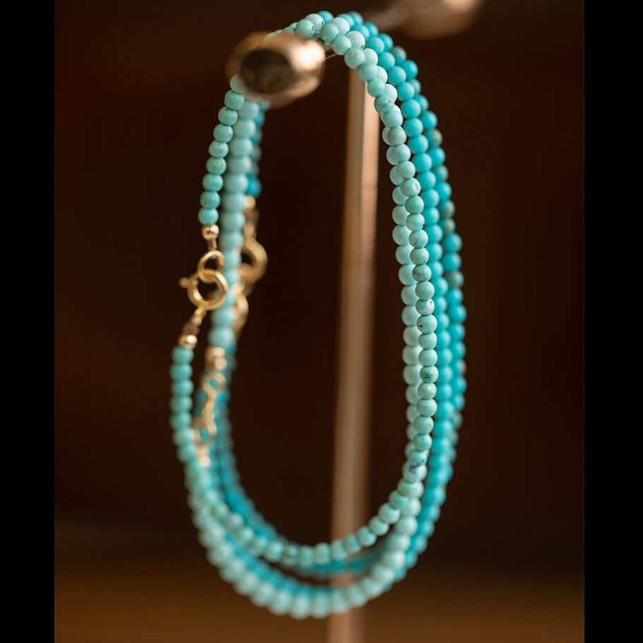 天然绿松石细款手链新中式清新弹力串珠轻奢高级感闺蜜手饰品批发