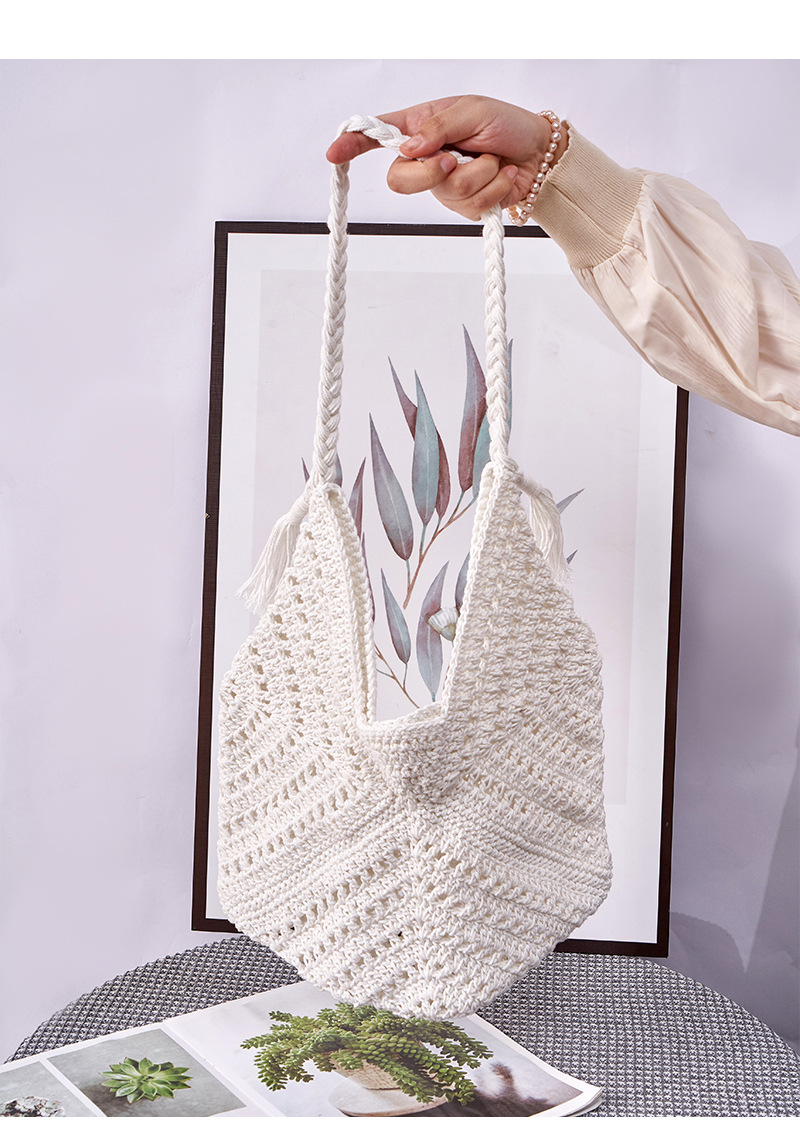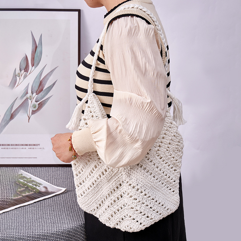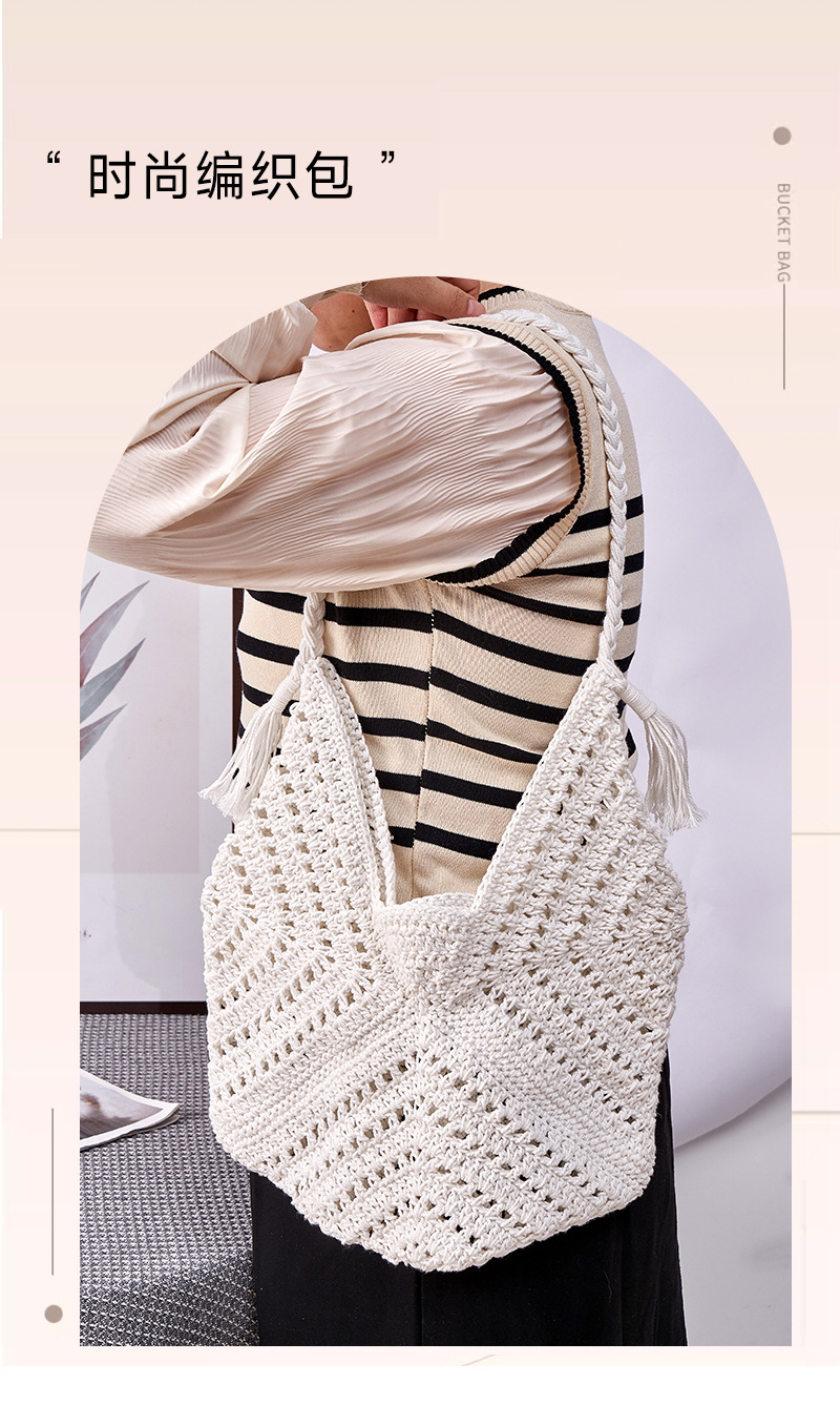 风格: 都市简约 货号: 单肩包 材质: 棉 箱包潮流款式: 单肩包 箱包大小: 中 流行元素: 编织,串珠,镂空 上市年份季节: 2024年春季 里料质地: 涤棉 箱包形状: 竖款方型 开盖方式: 敞口 重量: 8.0 kg/个