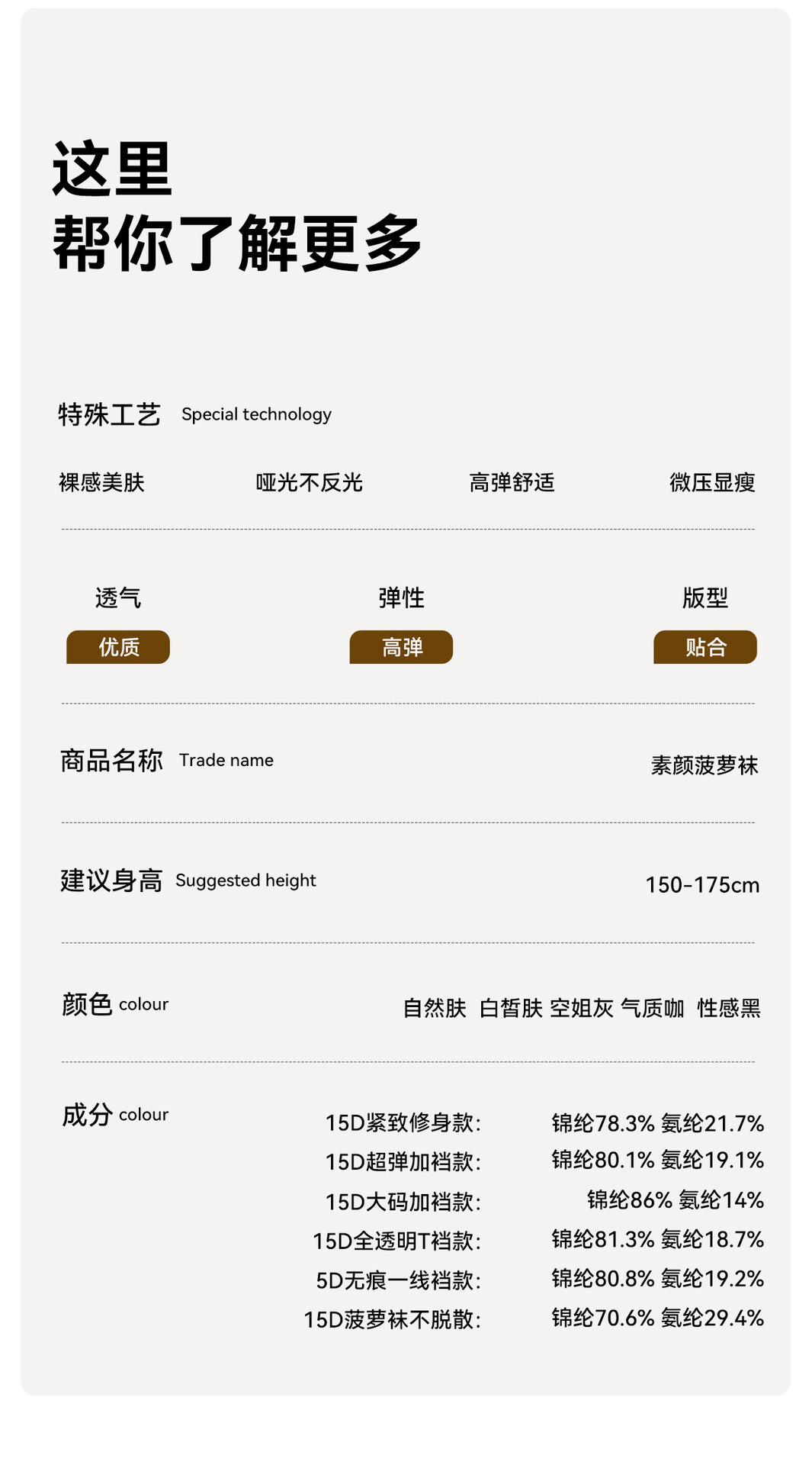 | 15D紧致修身款【适合80-110】 | ¥475 | 4810双可售 |