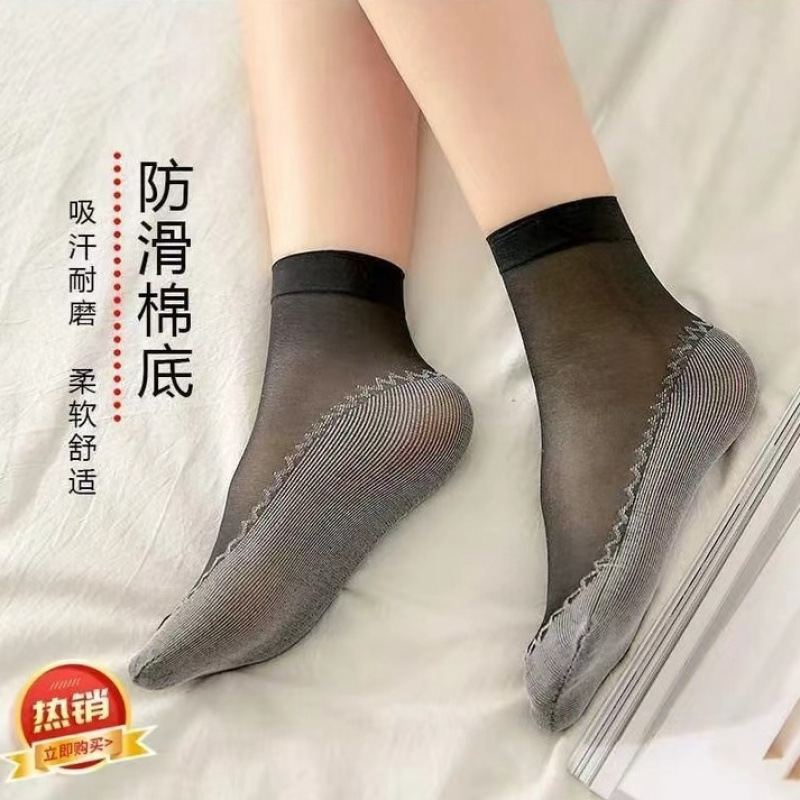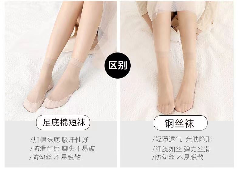 天鹅绒棉底钢丝袜女短筒二代春夏季薄款吸汗防滑耐磨防勾丝诸暨袜