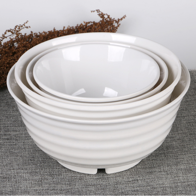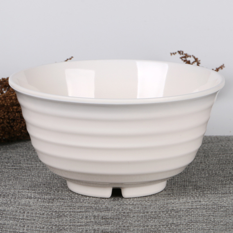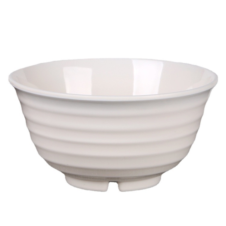 鼎洪家用商用密胺碗批发 耐摔加厚火锅自助餐饭碗 全白横纹仿瓷碗