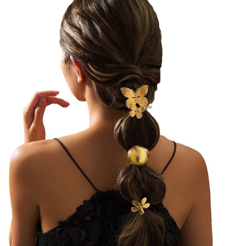 金色蝴蝶花朵金属发绳跨境合金头绳 English | 投诉