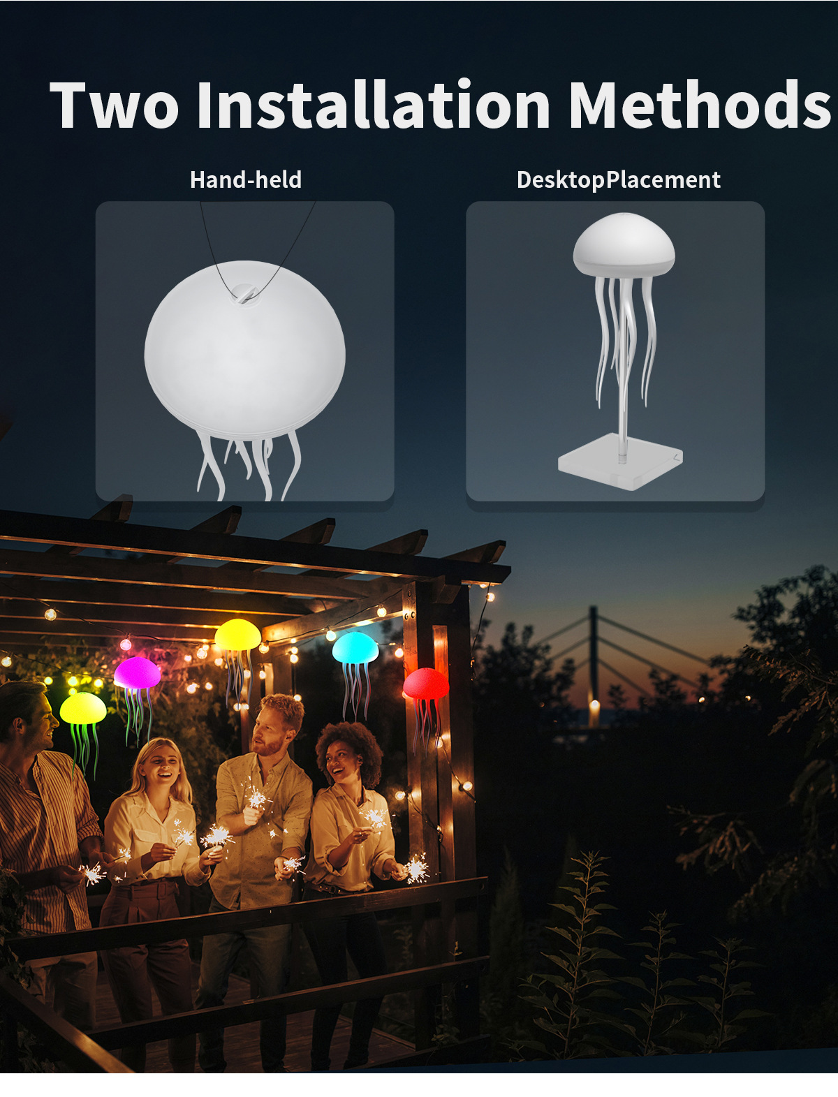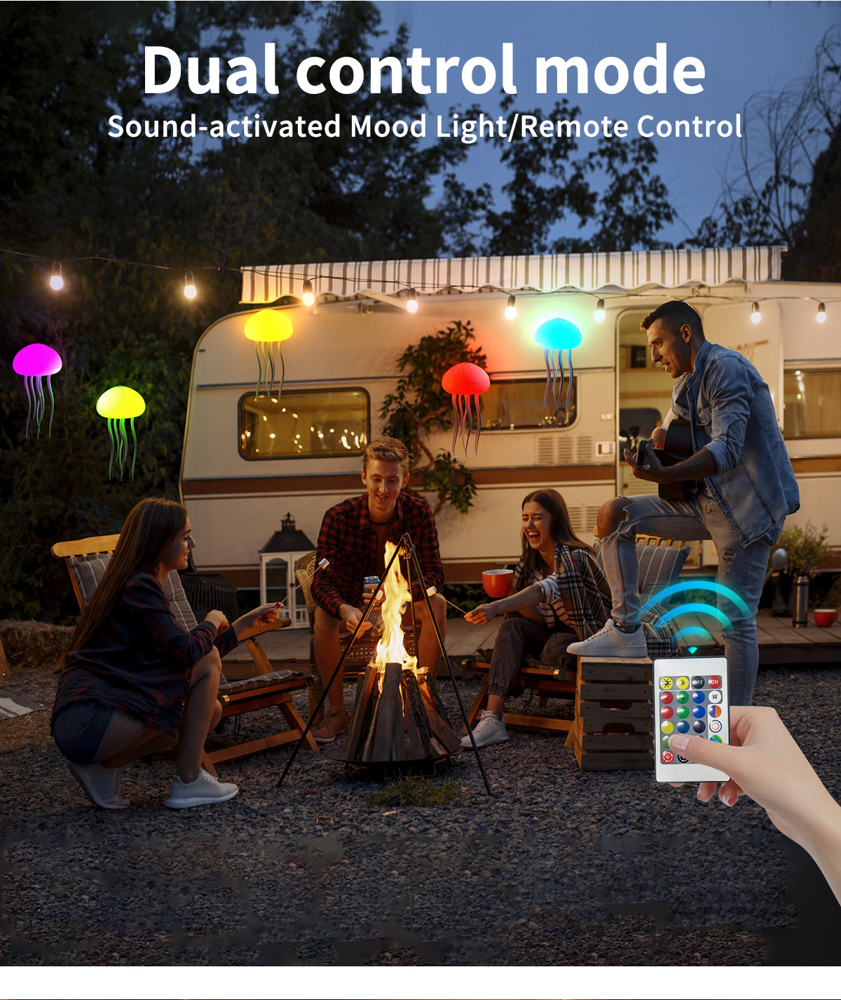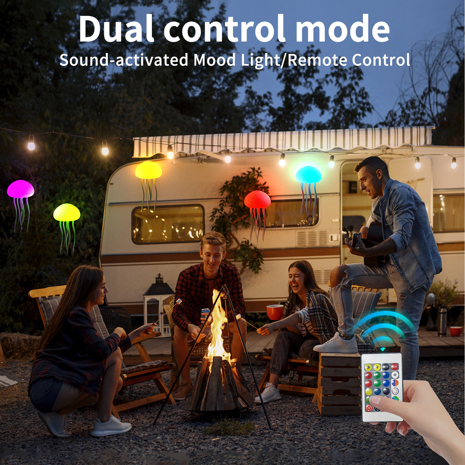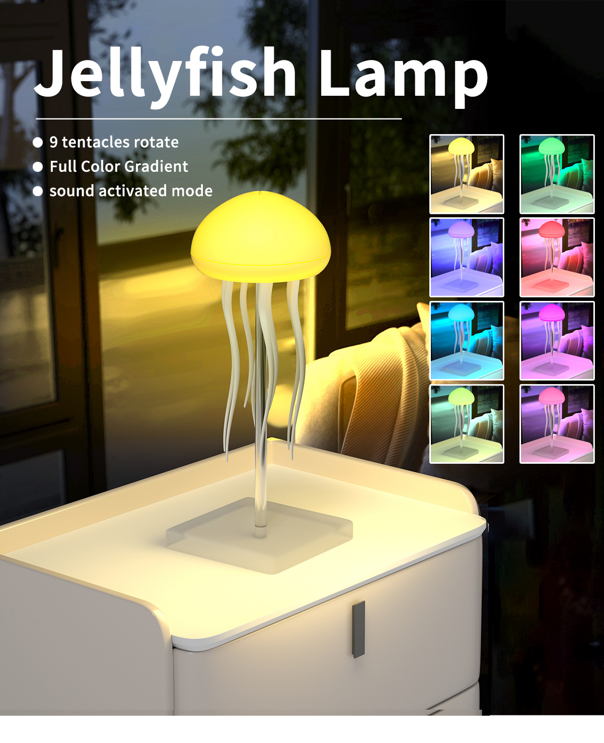 跨境声控感应七彩情调水母氛围灯装饰悬浮灵动触角氛围灯小夜灯