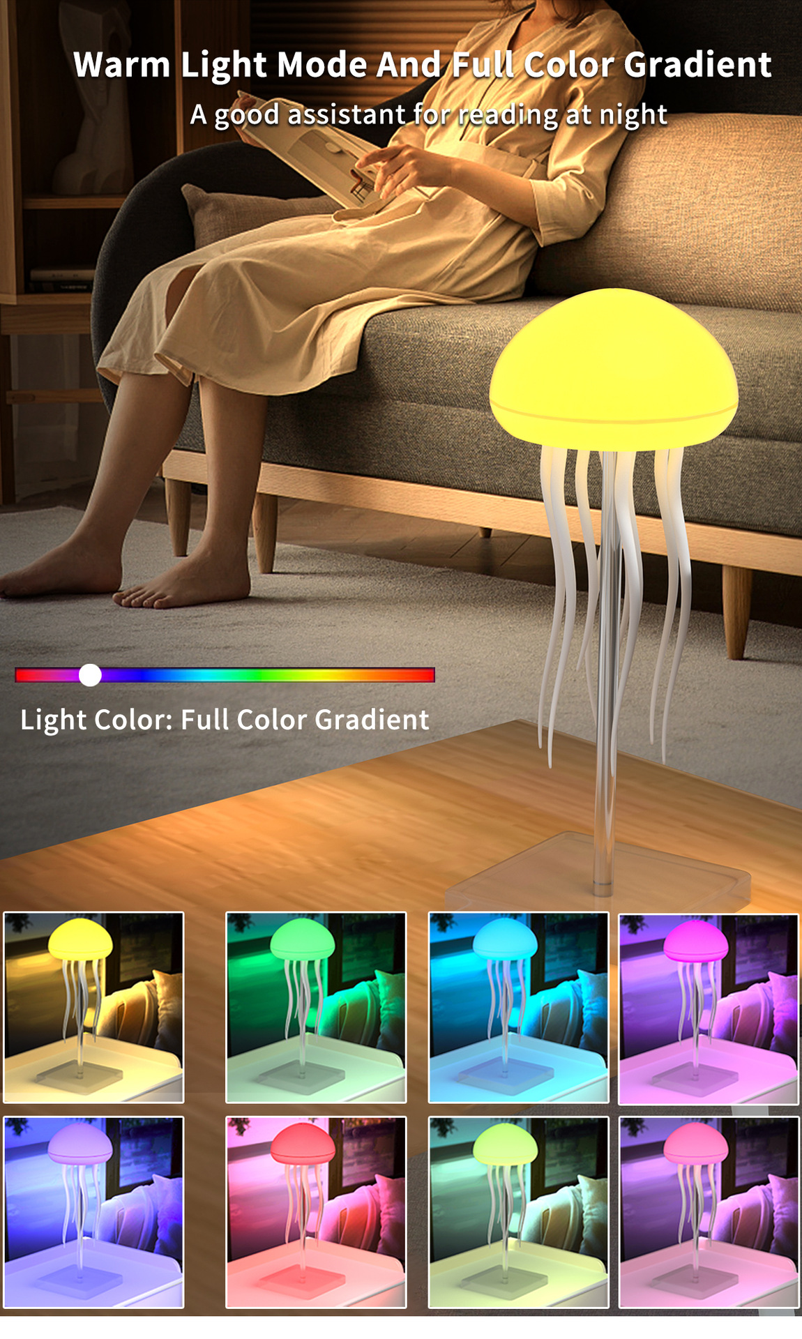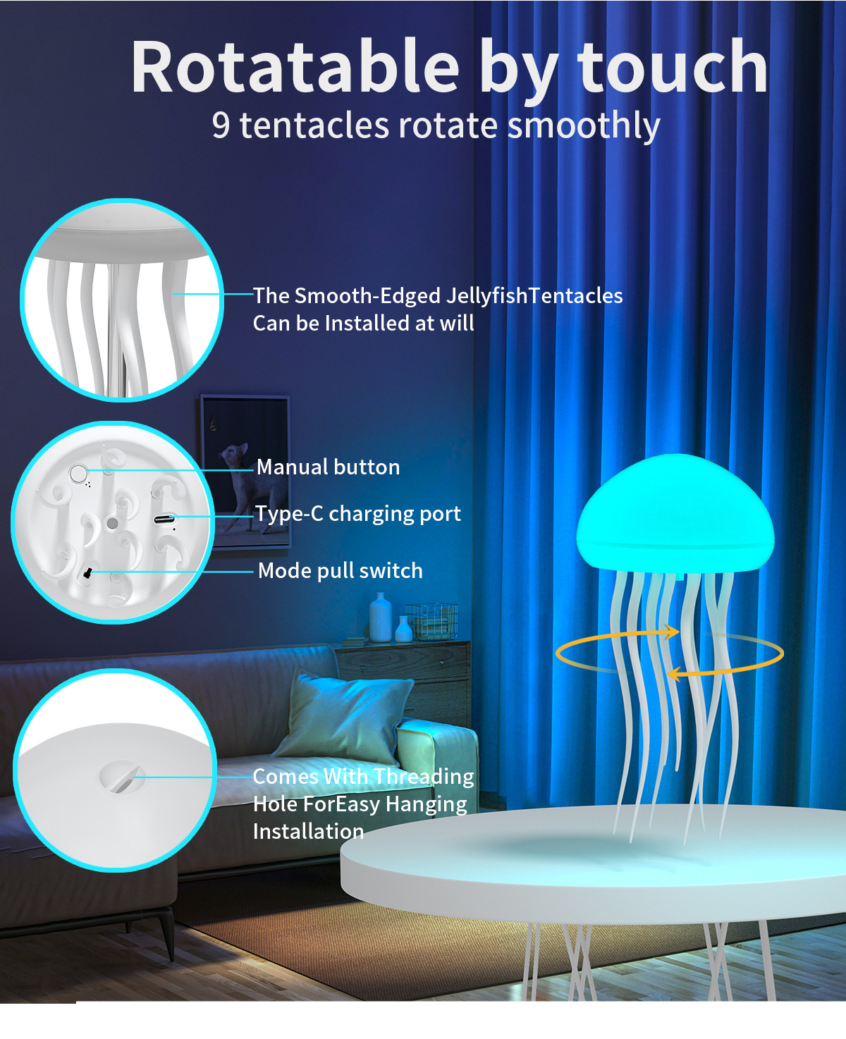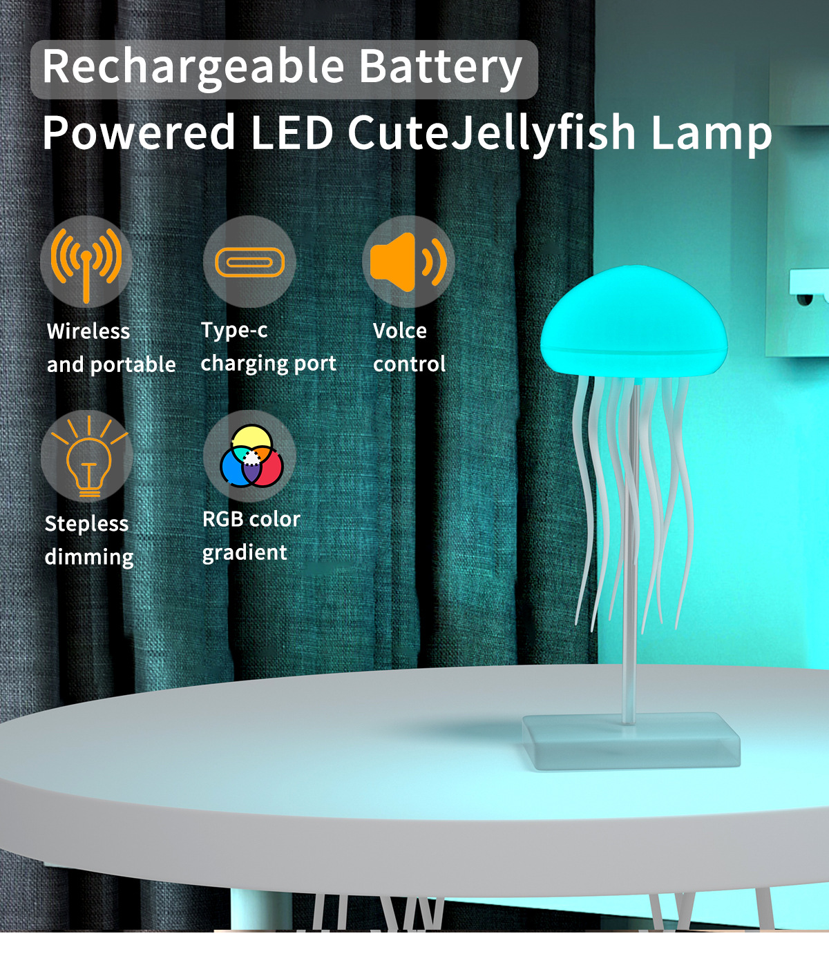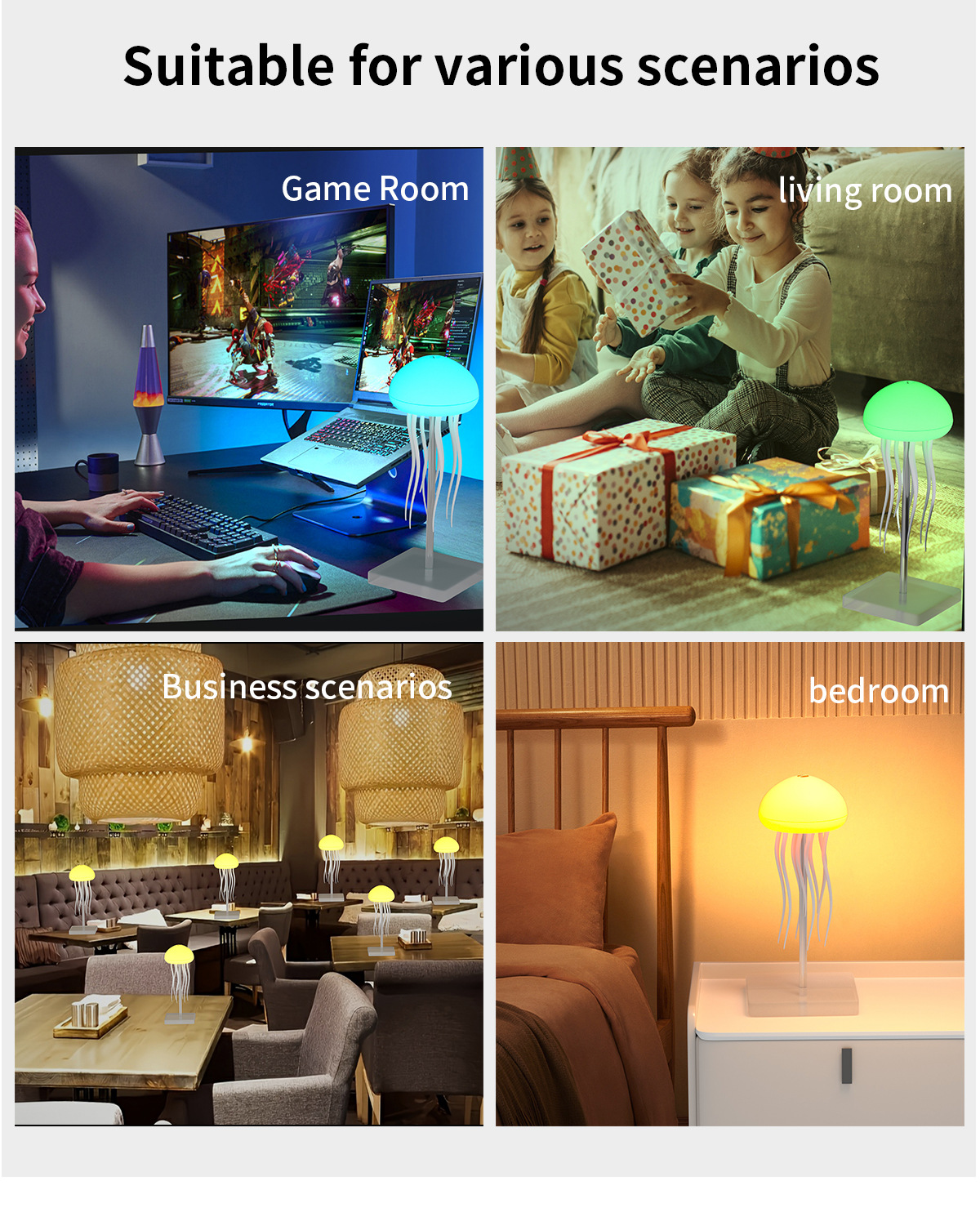 跨境声控感应七彩情调水母氛围灯装饰悬浮灵动触角氛围灯小夜灯 English | 投诉