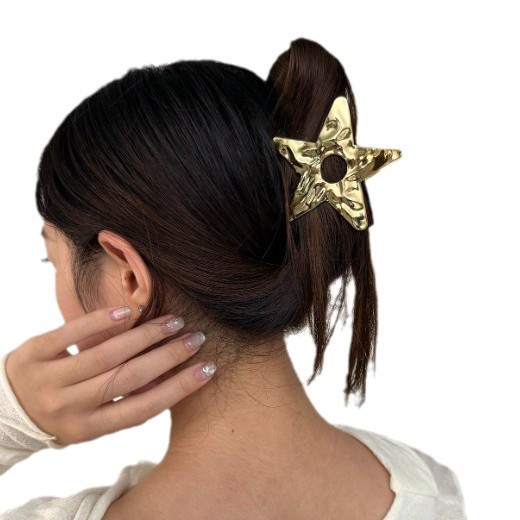 欧美跨境凹凸感镂空五角星金属抓夹冷淡大星星鲨鱼夹