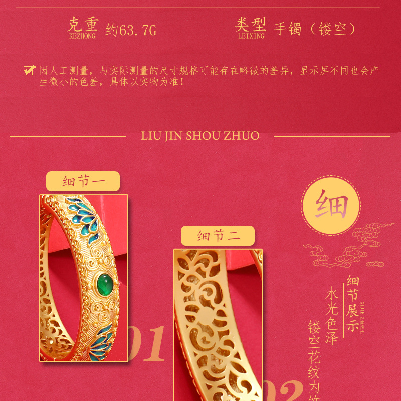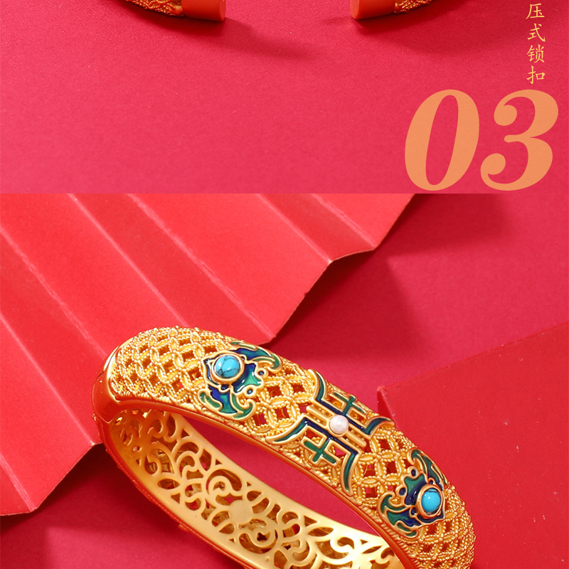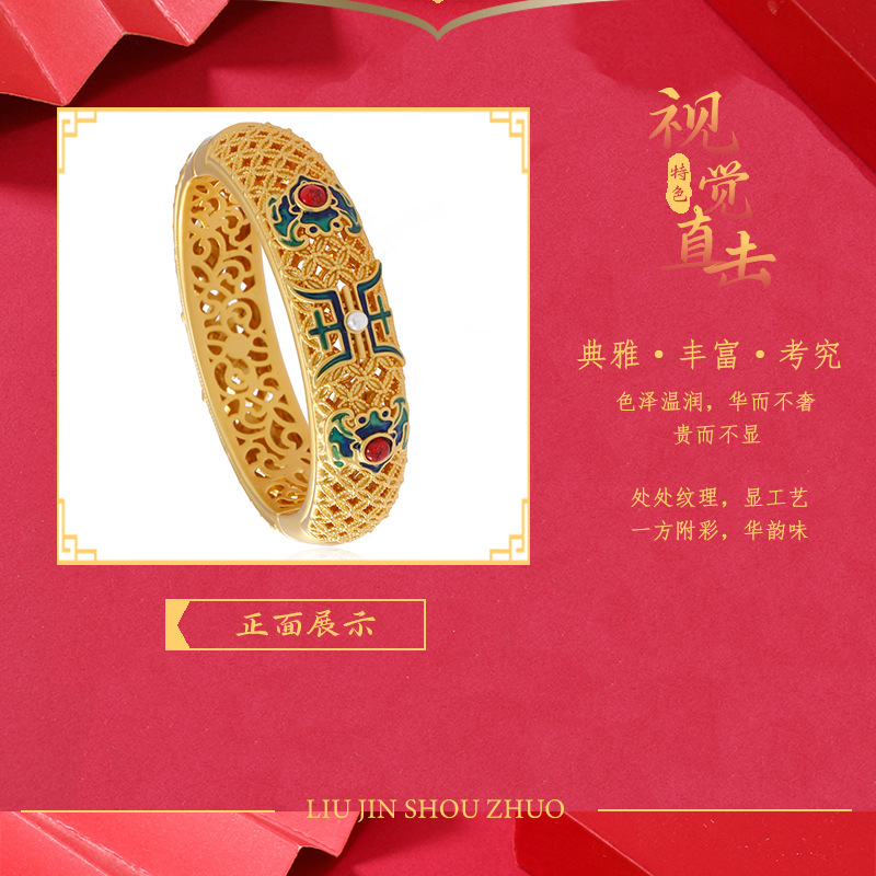 材质: 景泰蓝 货号: S2023035 品牌: 时代丽姿 处理工艺: 电镀 产地: 义乌 主要下游平台: PDD,天猫,拼多多,抖音 有可授权的自有品牌: 是 是否跨境出口专供货源: 否 流行元素: 如意,招财猫,祥云,福字,万字,龙凤纹饰 上市年份/季节: 2025年春季 重量: 0.5 kg/个