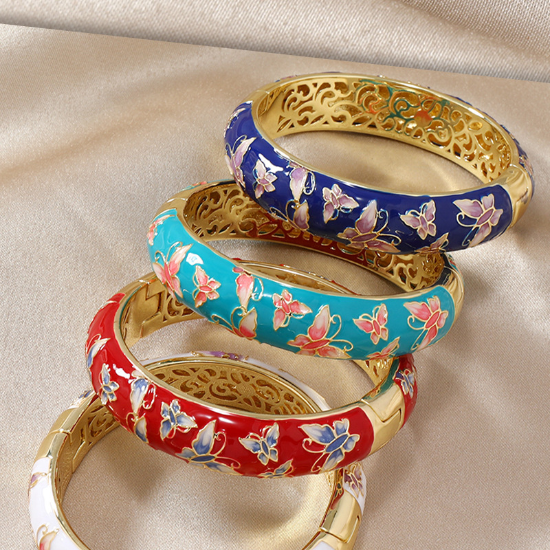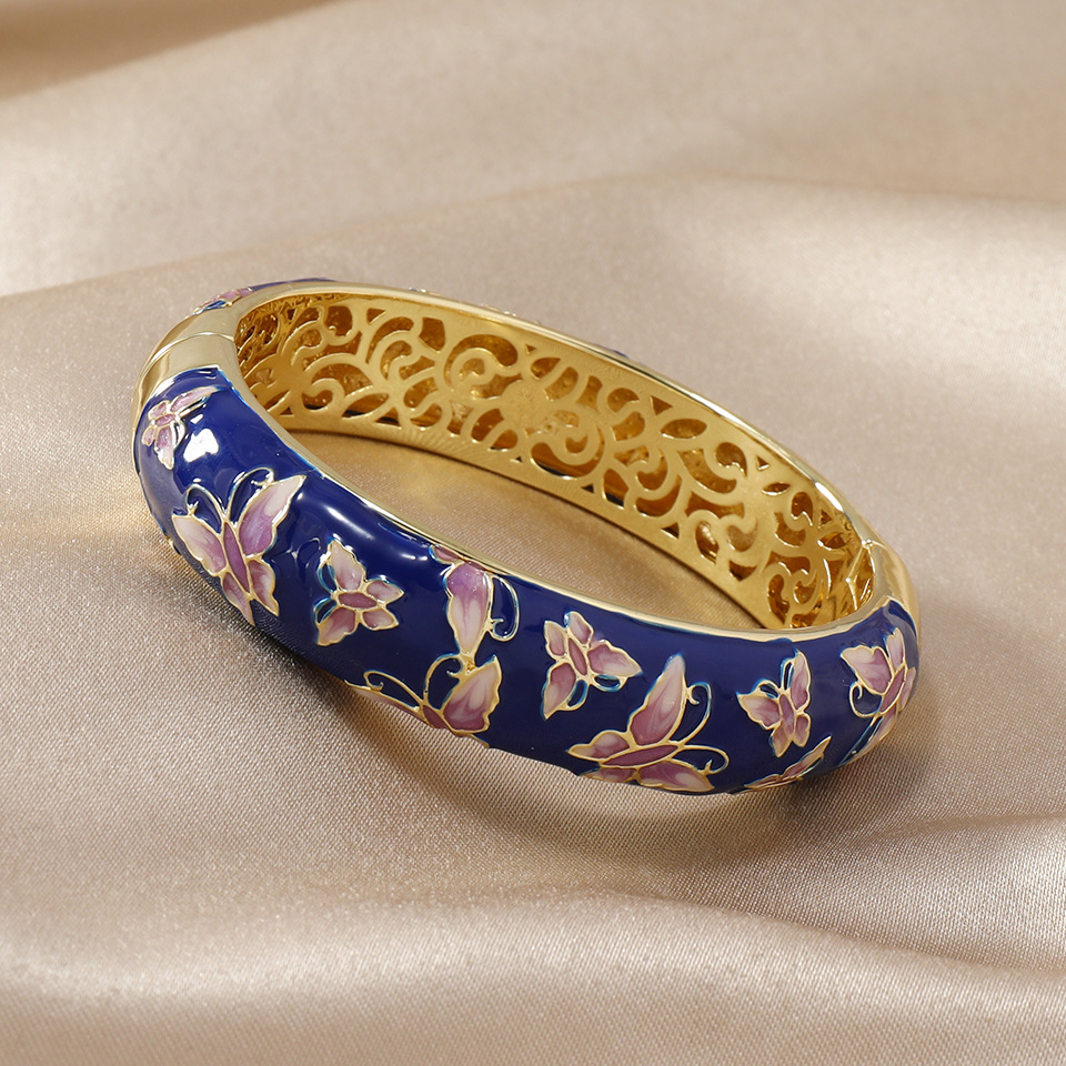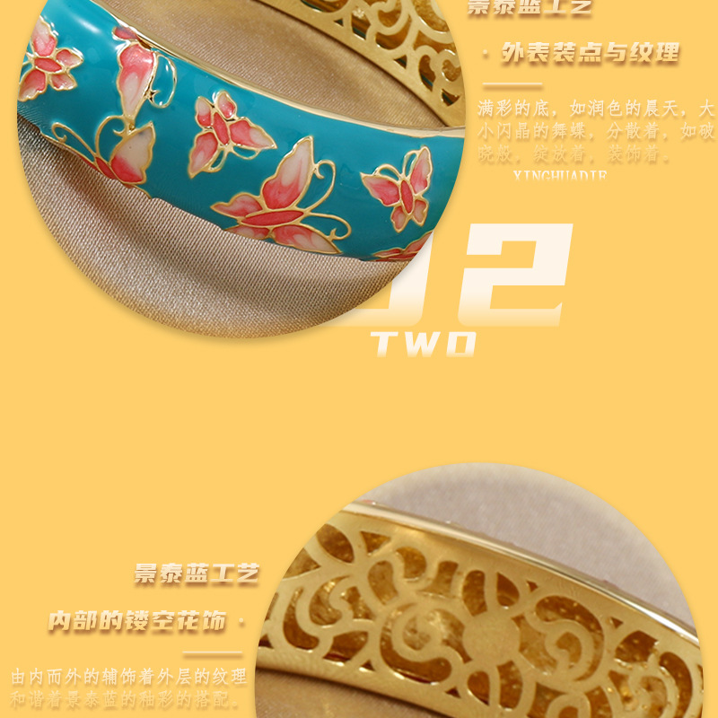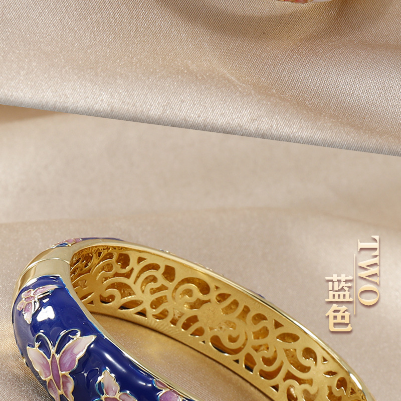 直播爆款复古宫廷风珐琅蝴蝶景泰蓝镂空手镯旗袍民族风服饰搭配 投诉