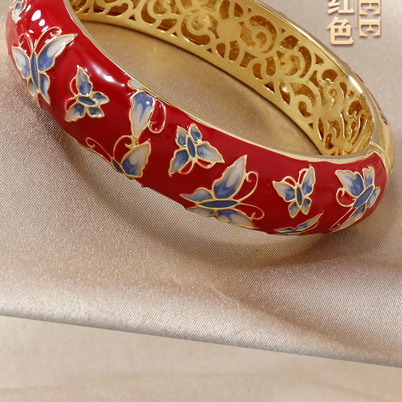 直播爆款复古宫廷风珐琅蝴蝶景泰蓝镂空手镯旗袍民族风服饰搭配