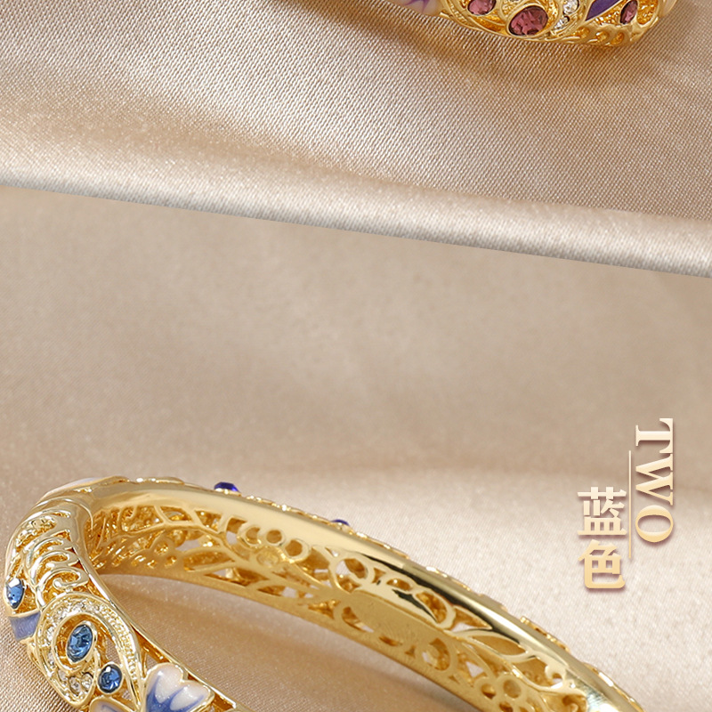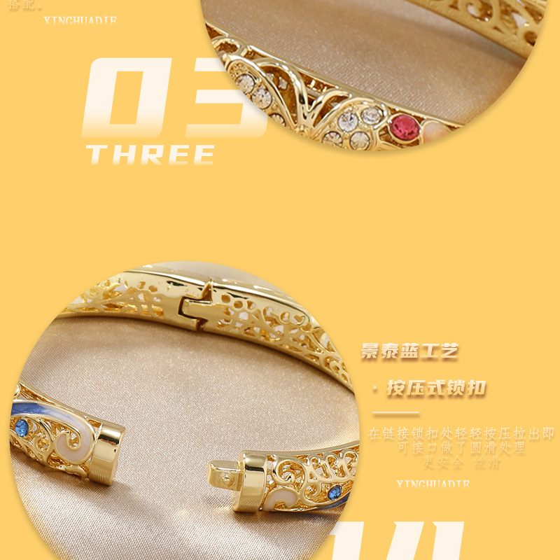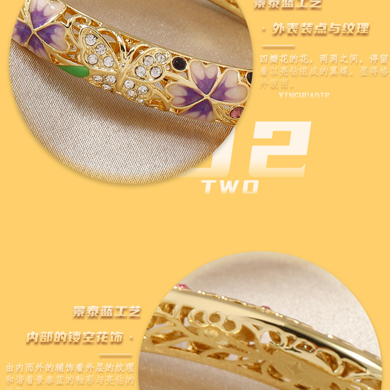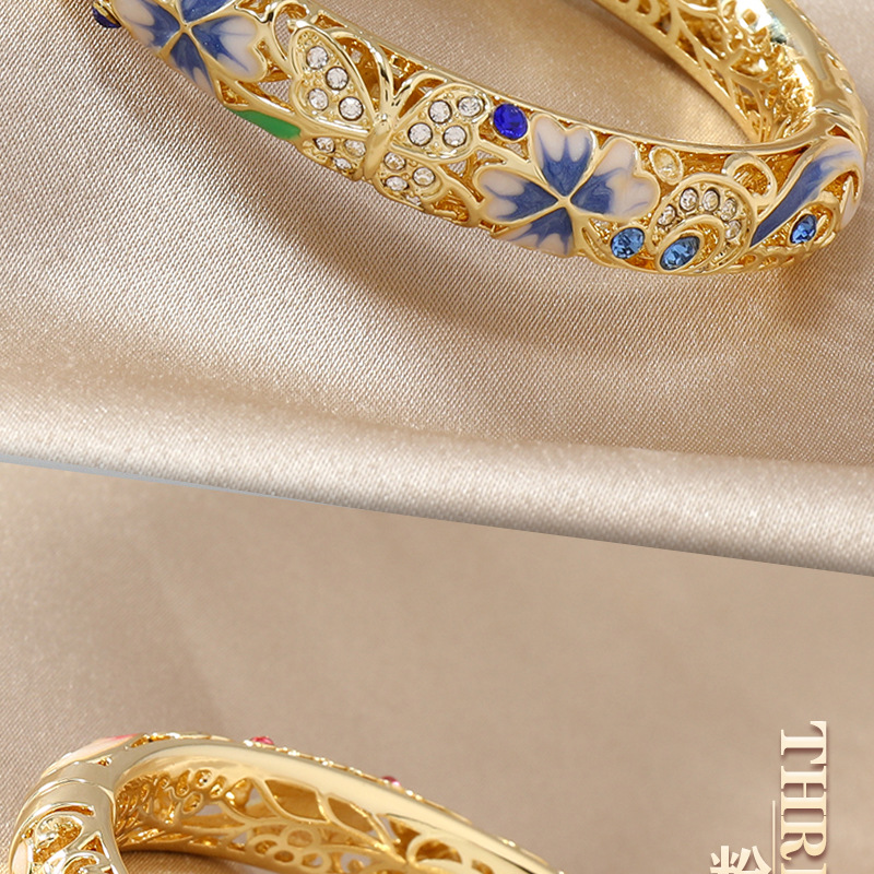 复古景泰蓝四叶草满钻镂空手镯开口珐琅旗袍镯子时尚古风送礼手饰 投诉