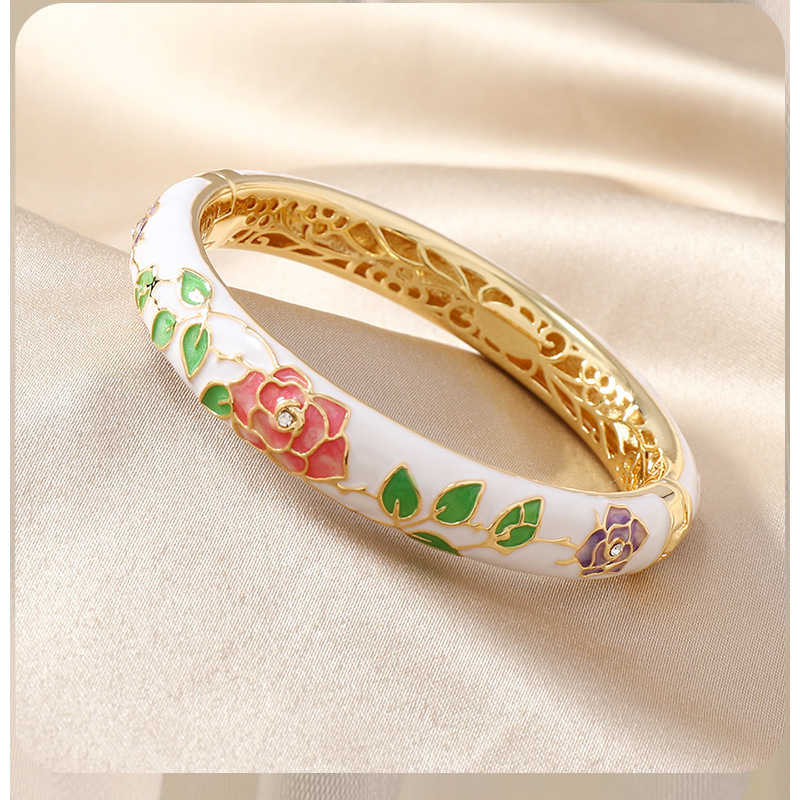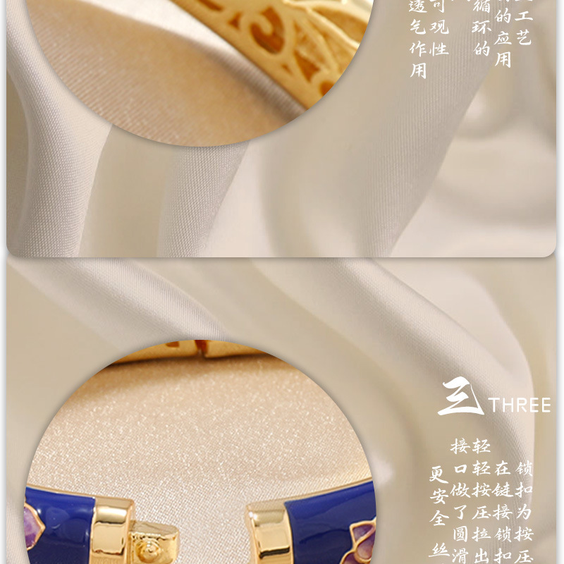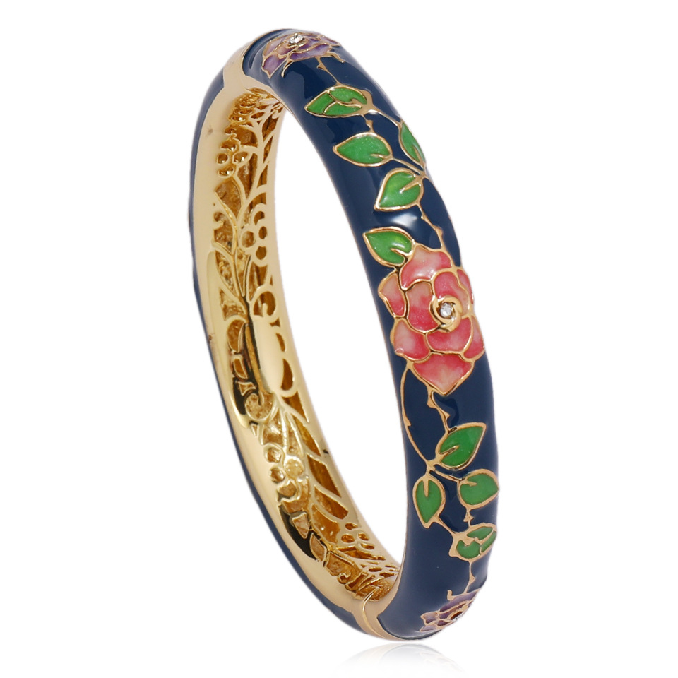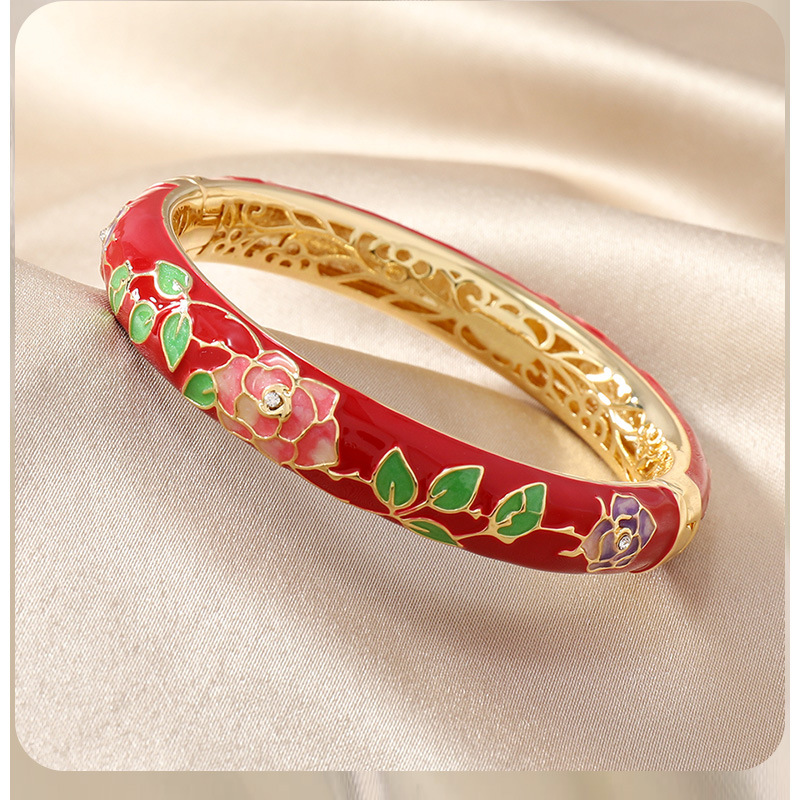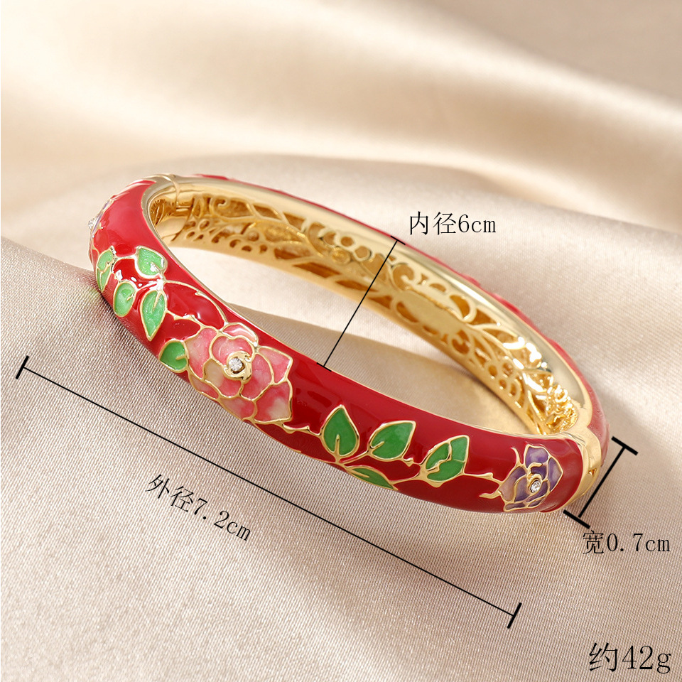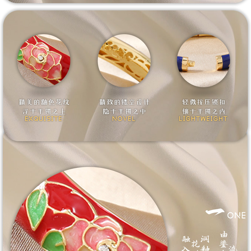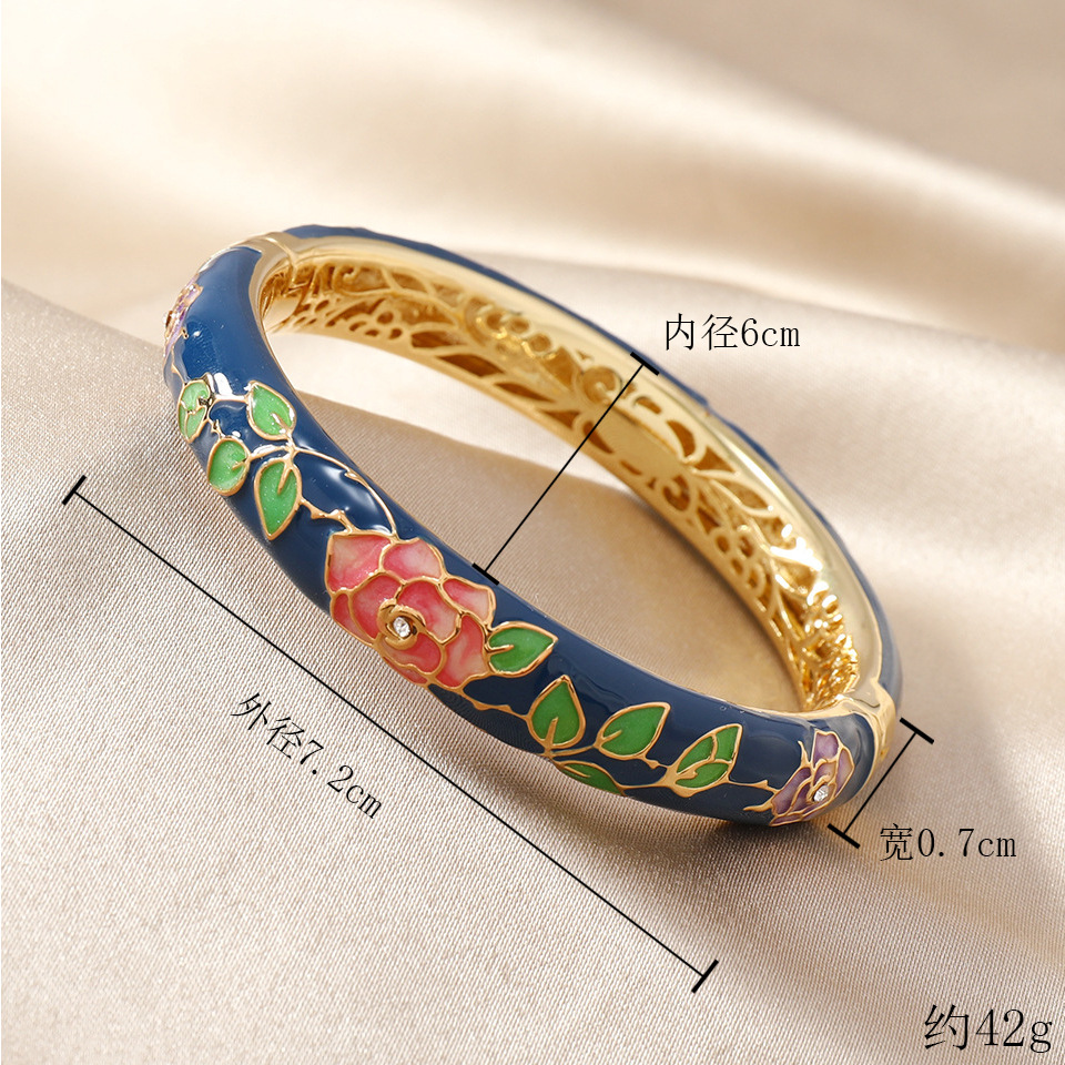 国风景泰蓝开口手镯牡丹花百搭珐琅彩女士复古民族风饰品旅游礼物 投诉