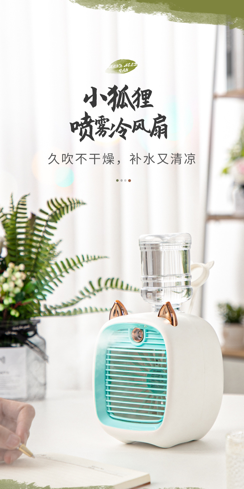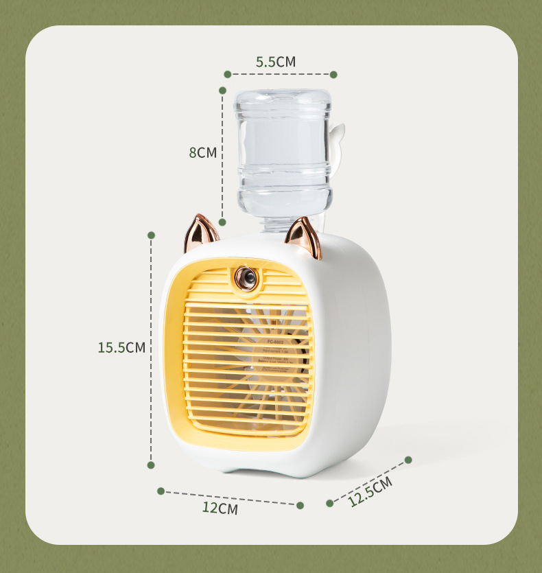 产品名称:小狐狸冷风扇 产品尺寸:11.9*11.9*23CM 彩盒尺寸:12.3*12.3*20.3cm 外箱尺寸:77*43*51cm 电机类型/电池类型:无刷电机/锂电池18650 |