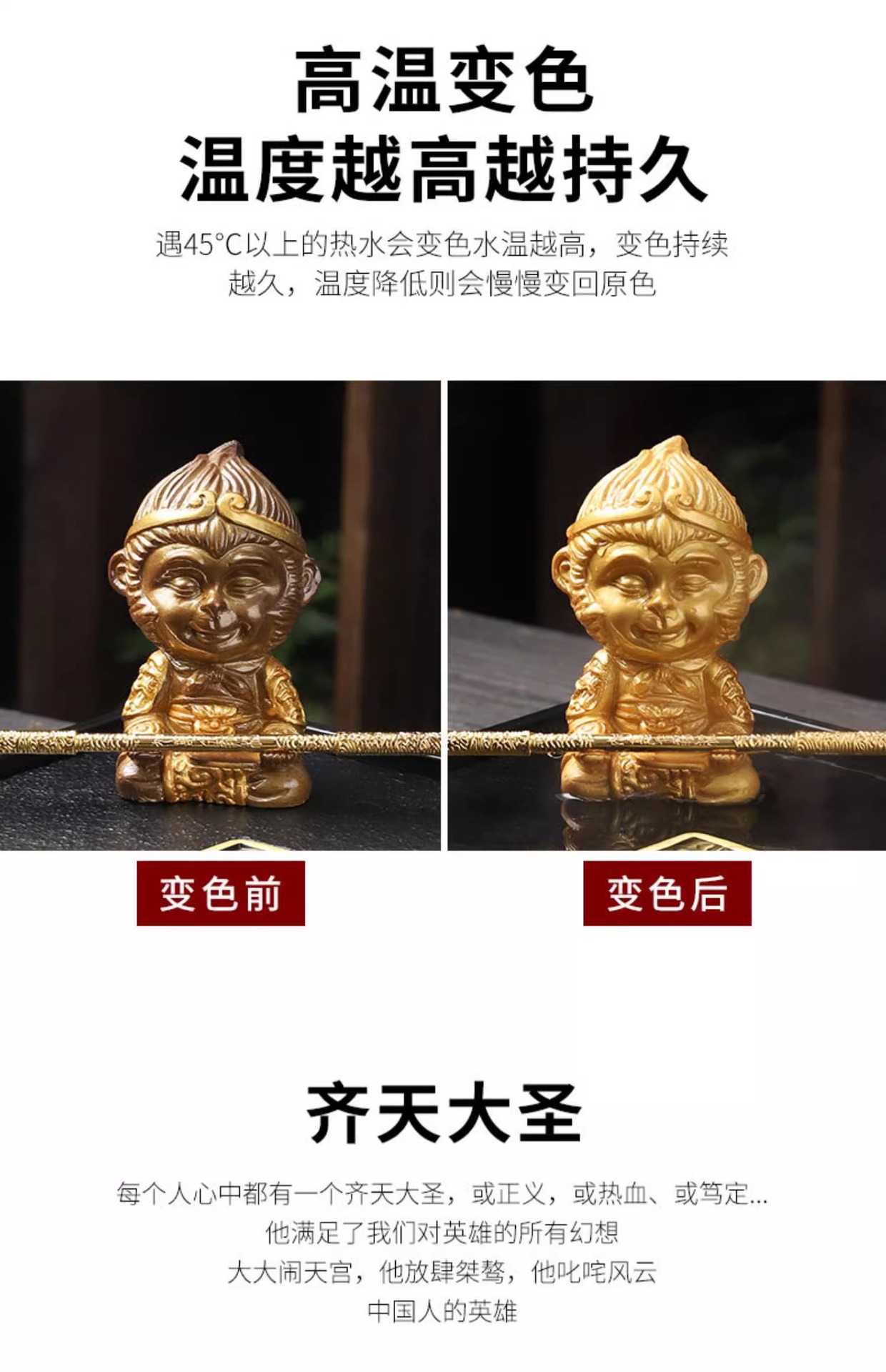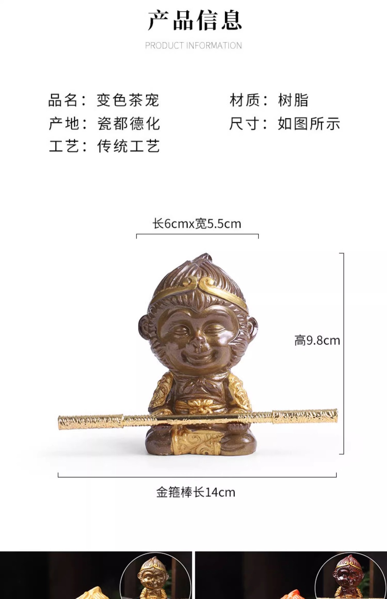 变色齐天大圣 茶道茶宠精品摆件 树脂茶摆变色孙悟空茶具摆件茶玩 投诉