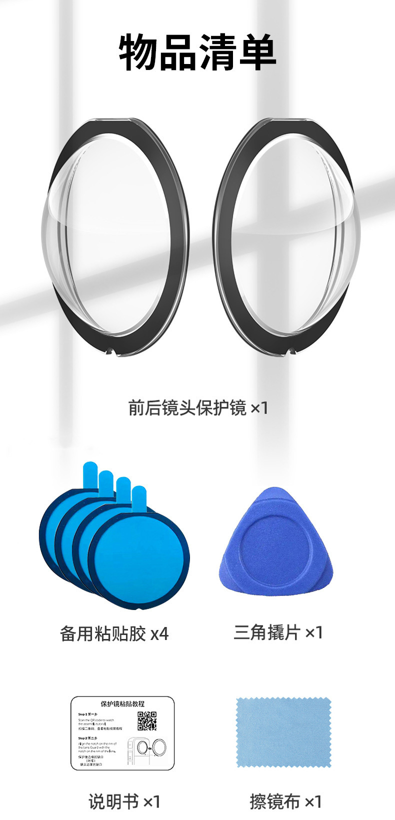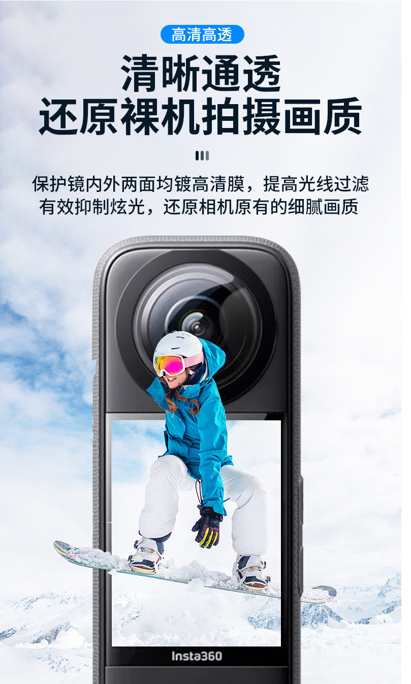 Insta 360X3/X2 镜头保护膜 高清防刮 耐磨抗摔 户外运动相机配件 English | 投诉