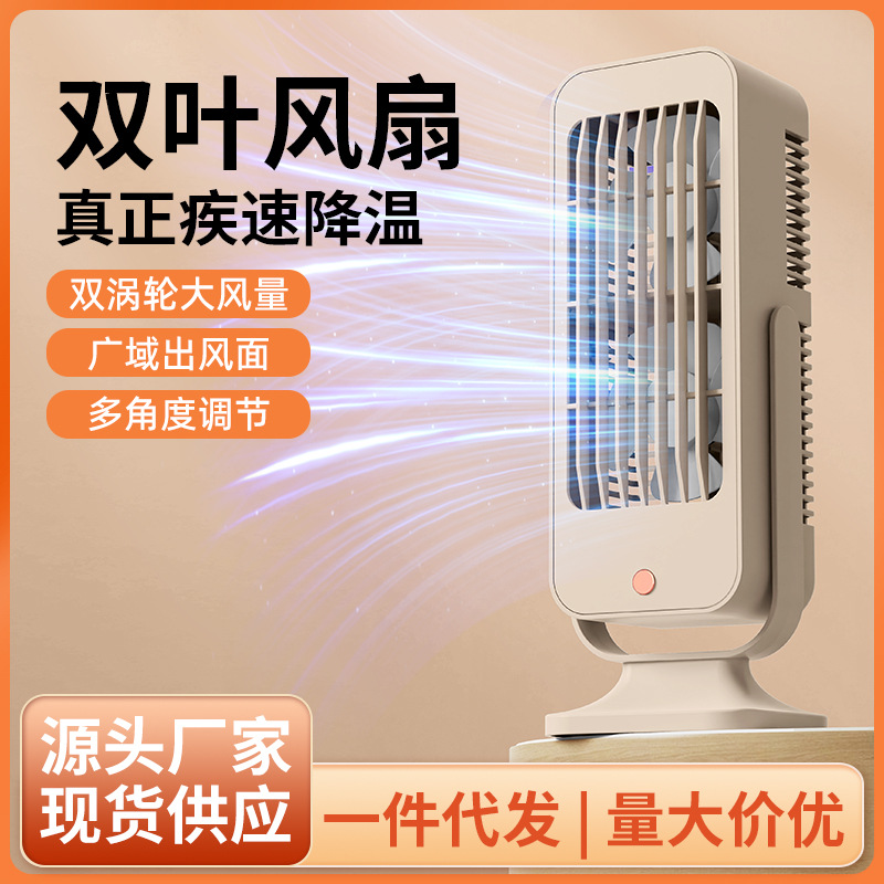 跨境桌面风扇学生宿舍usb充电式台式双风叶电风扇空调扇循环风扇