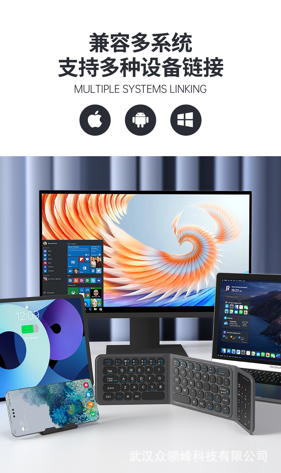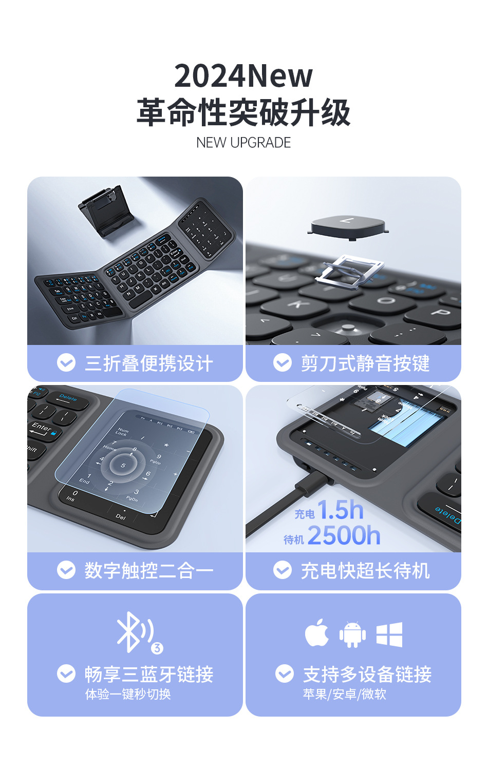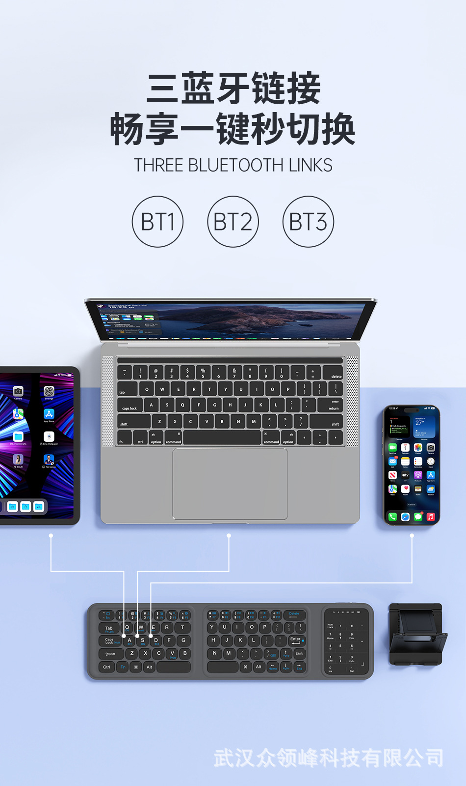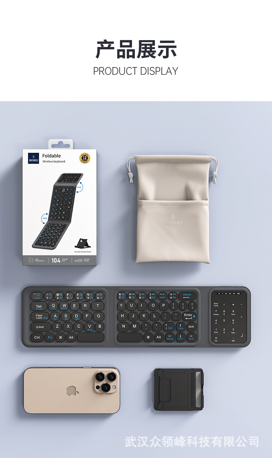 wiwu吉玛仕铝合金商务办公三折蓝牙折叠键盘键单模键盘 FMK-05便 English | 投诉