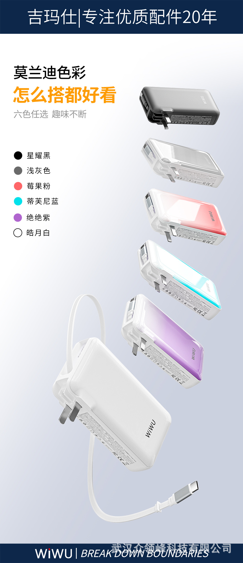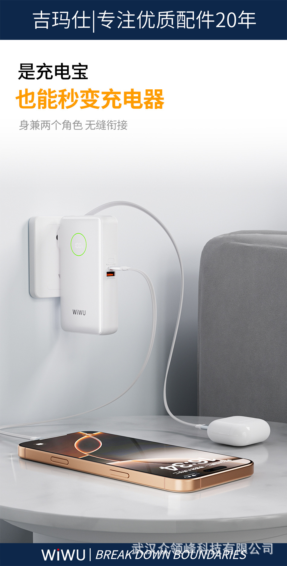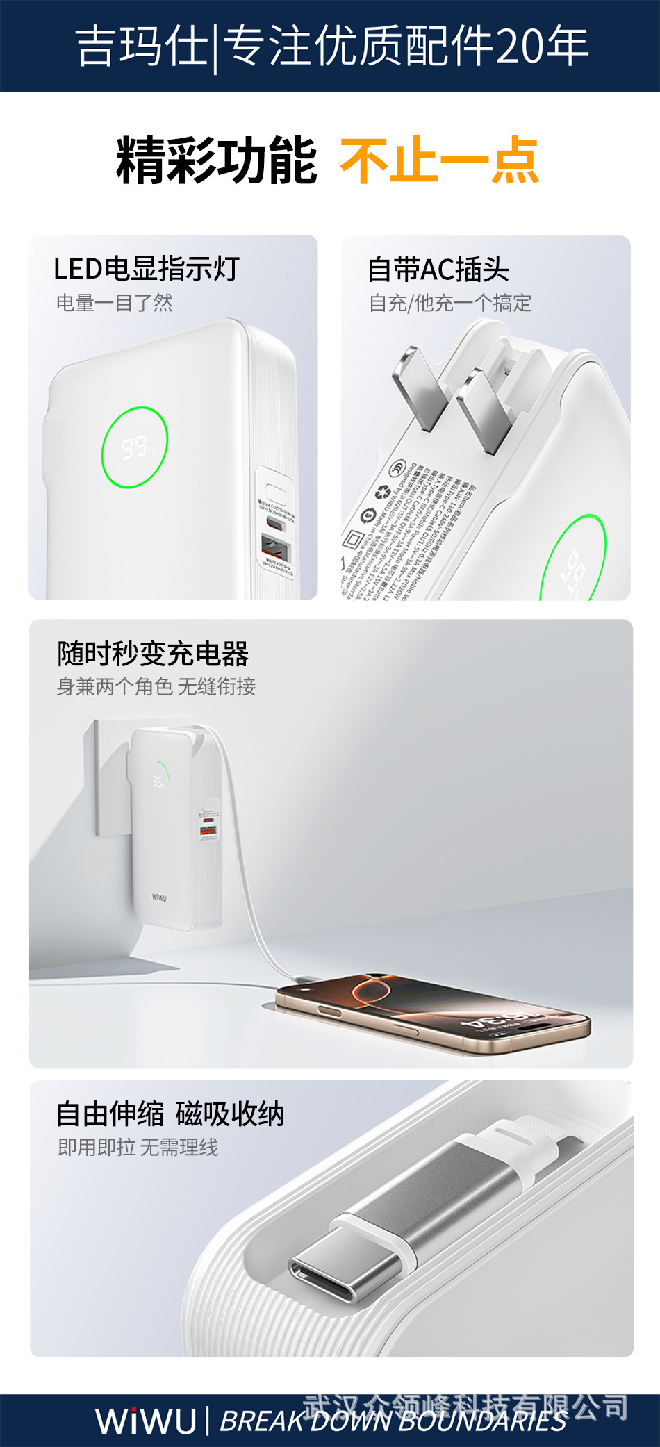 wiwu吉玛仕AC自带线PD22.5W10000毫安快充充电宝手机移动电源批发 English | 投诉