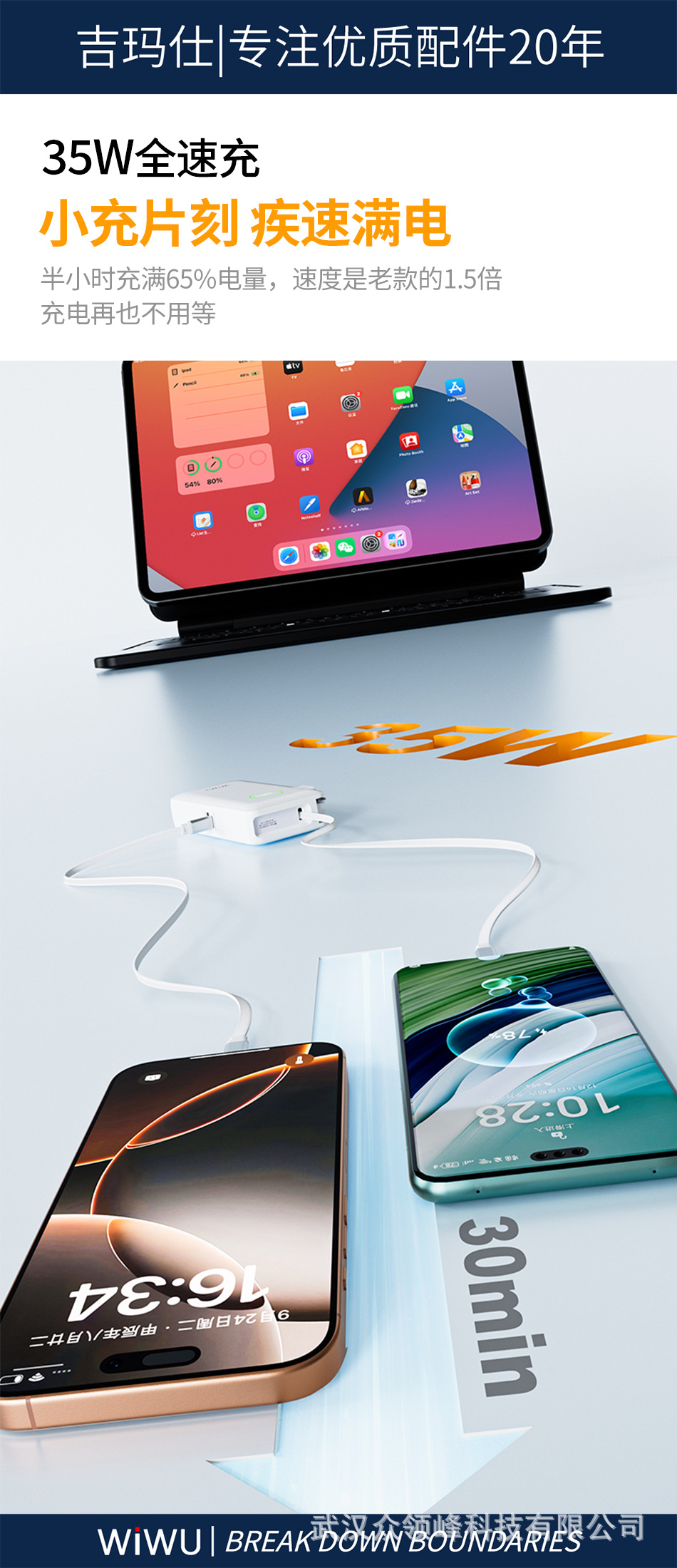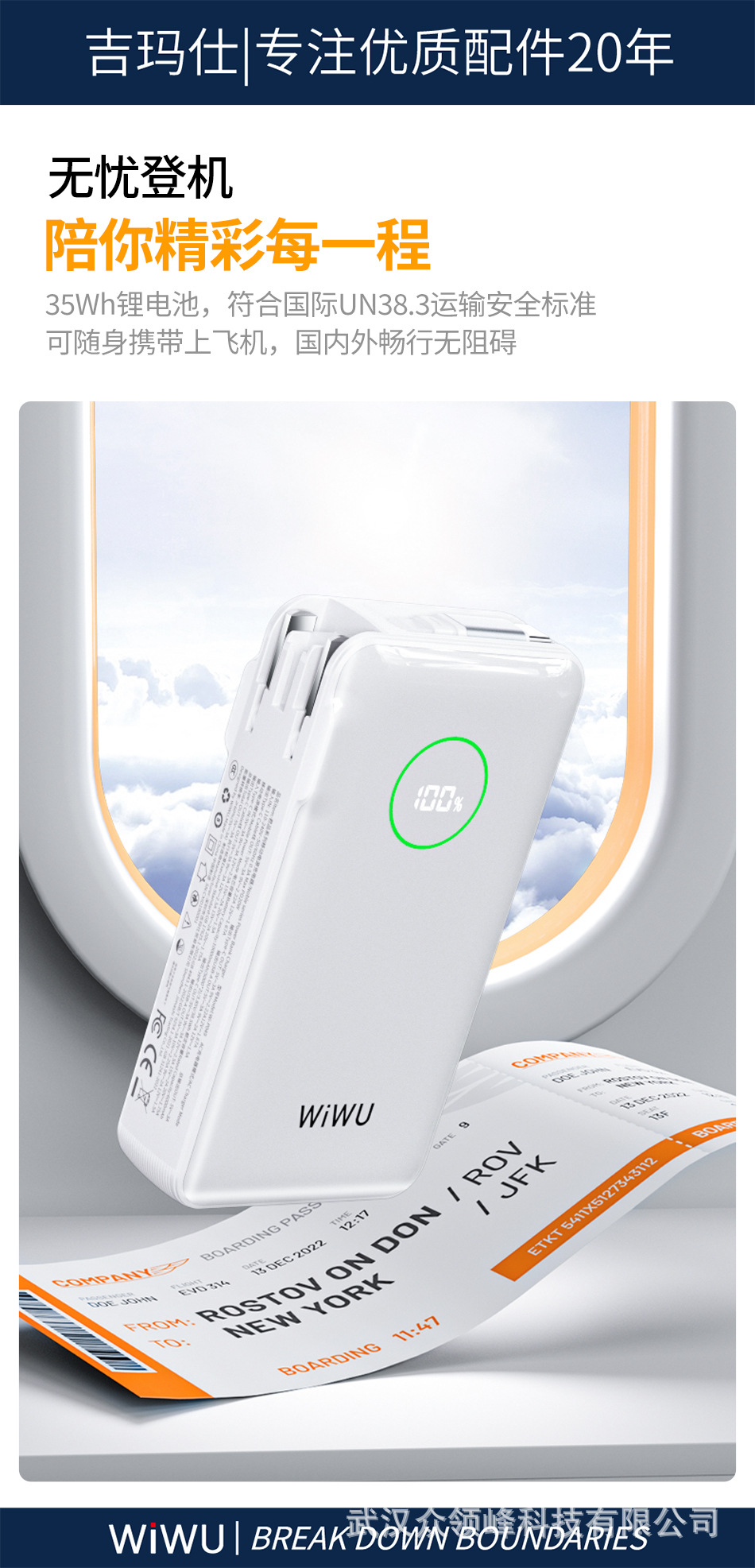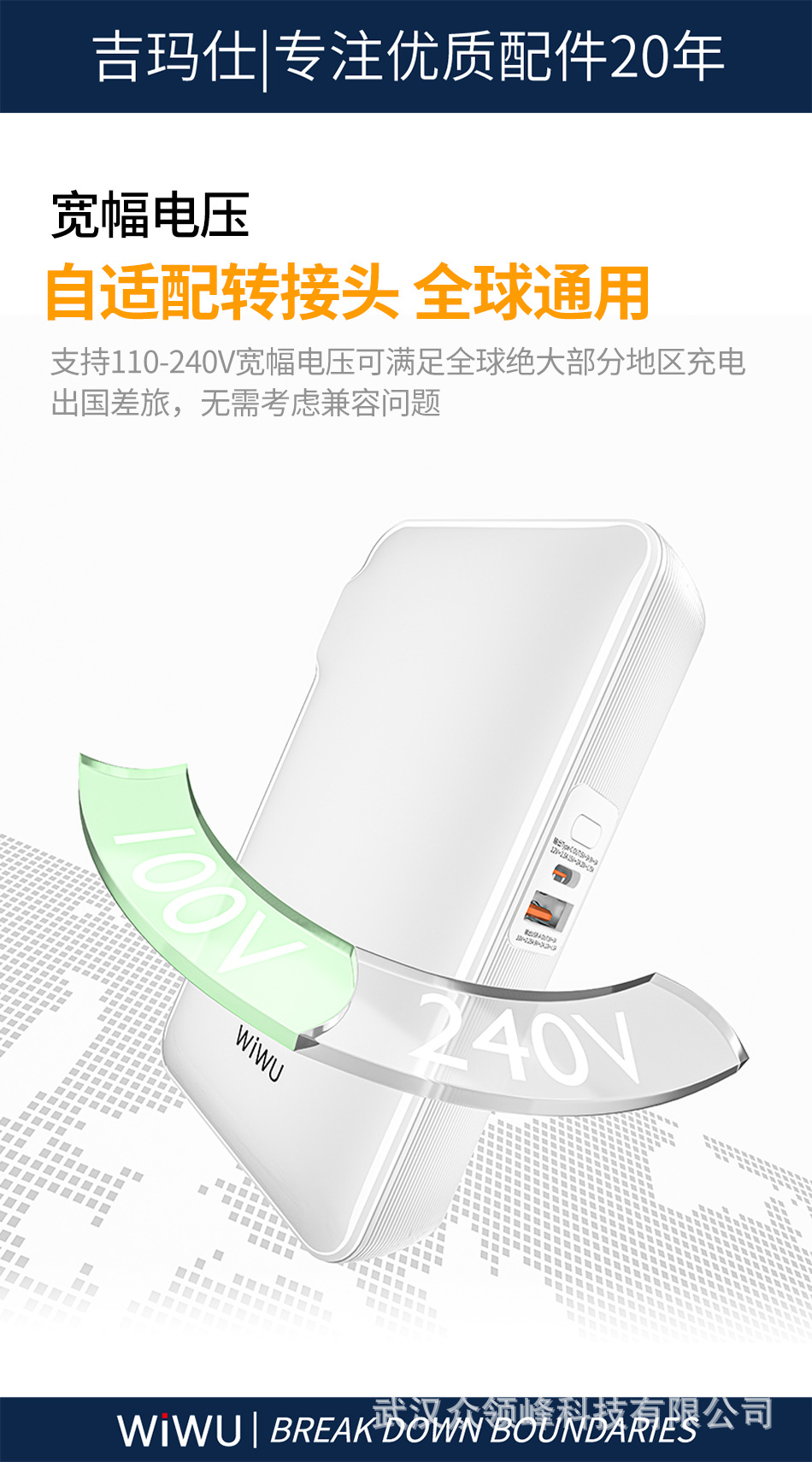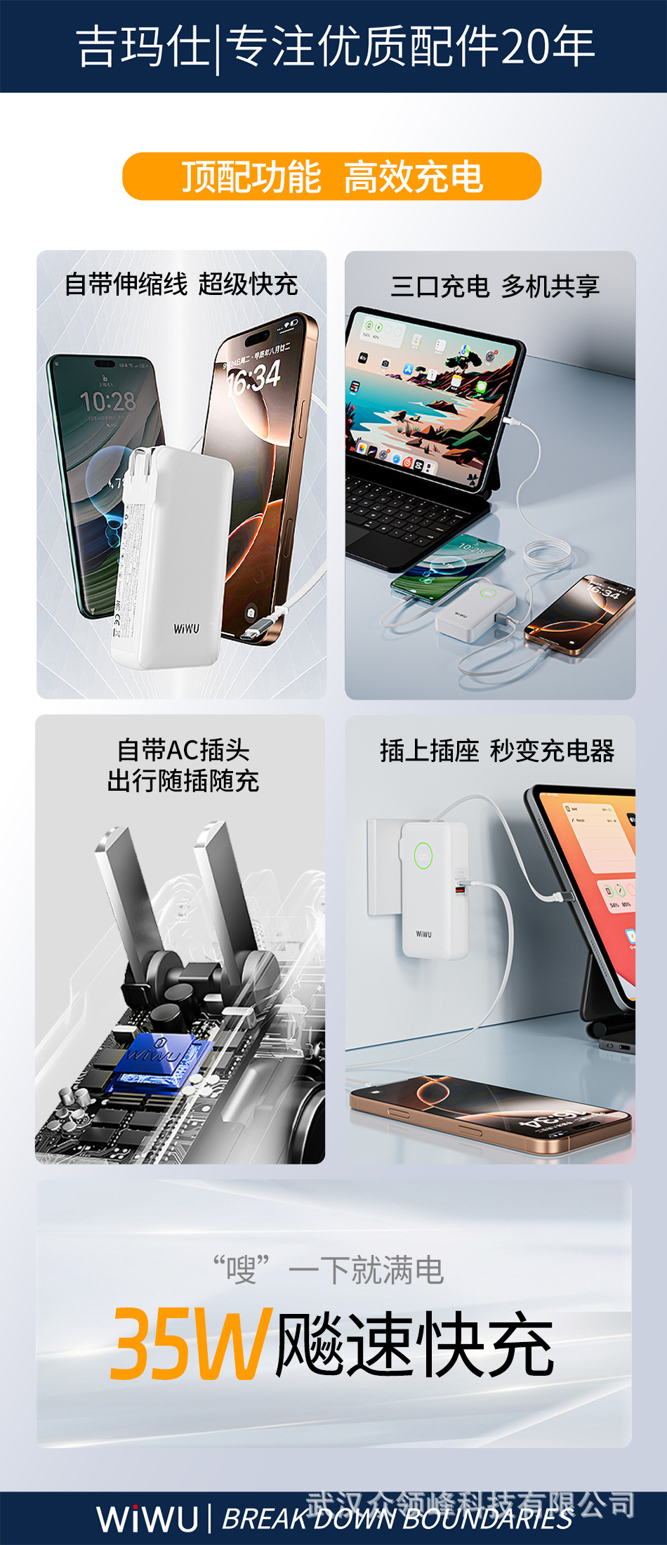 wiwu吉玛仕AC自带线PD22.5W10000毫安快充充电宝手机移动电源批发 English | 投诉
