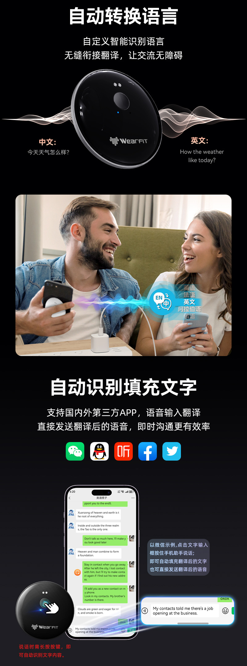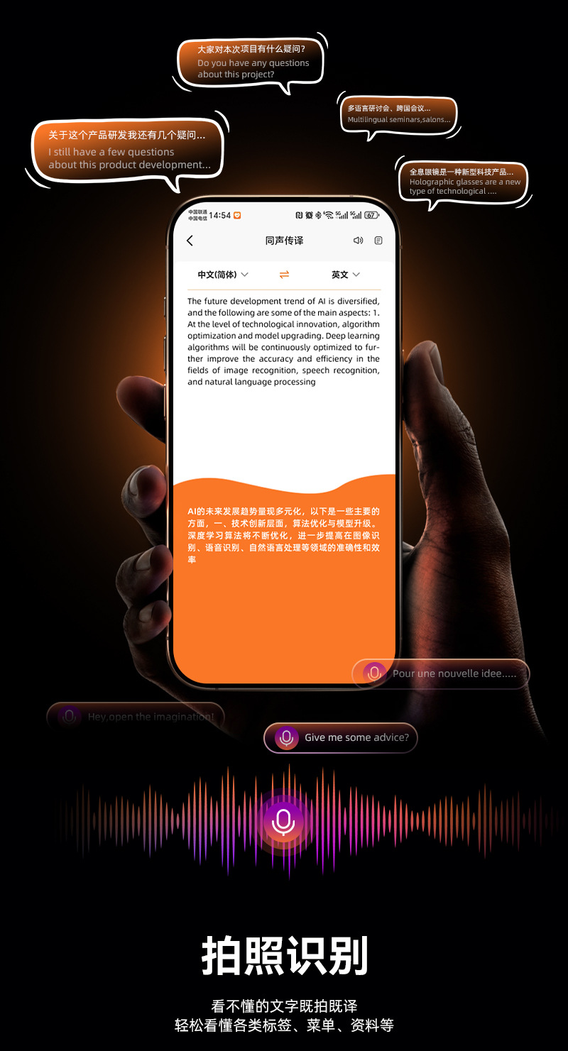 爆款Ai102实时智能翻译机同声翻译50+种语言ai翻译助手出国旅游 English | 投诉