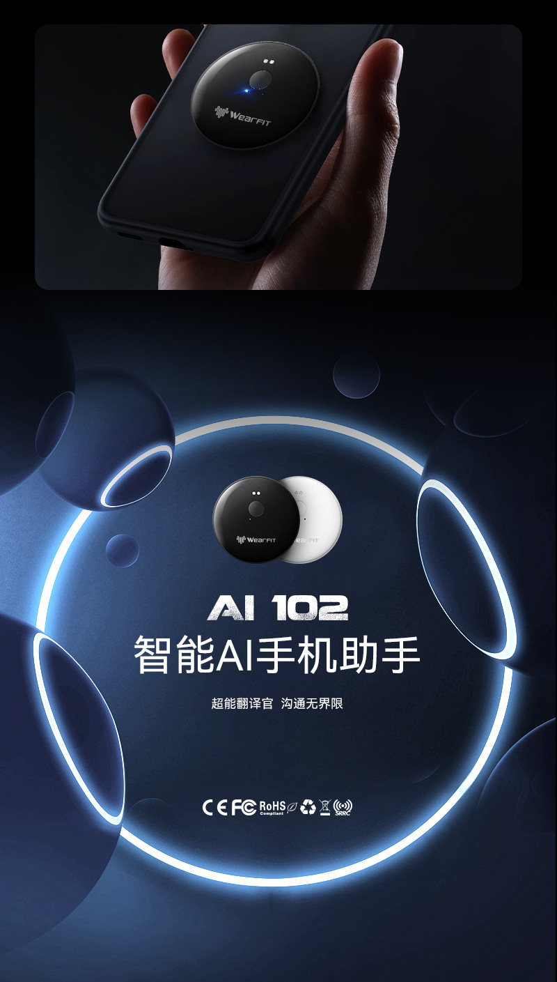 型号: Ai 102 类型: 智能语音助手/翻译器 操作系统: iOS 蓝牙: 支持 无线距离: 0-15米 操作方式: 语音对话翻译 材质: 注塑+磁吸 装箱数: 120PCS 体积: 0.065 重量: 12k'g 重量: 12.0 kg/套
