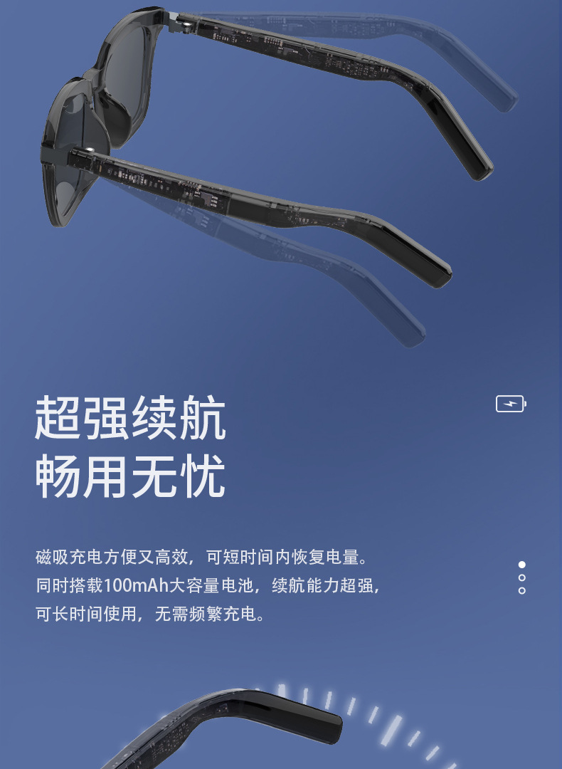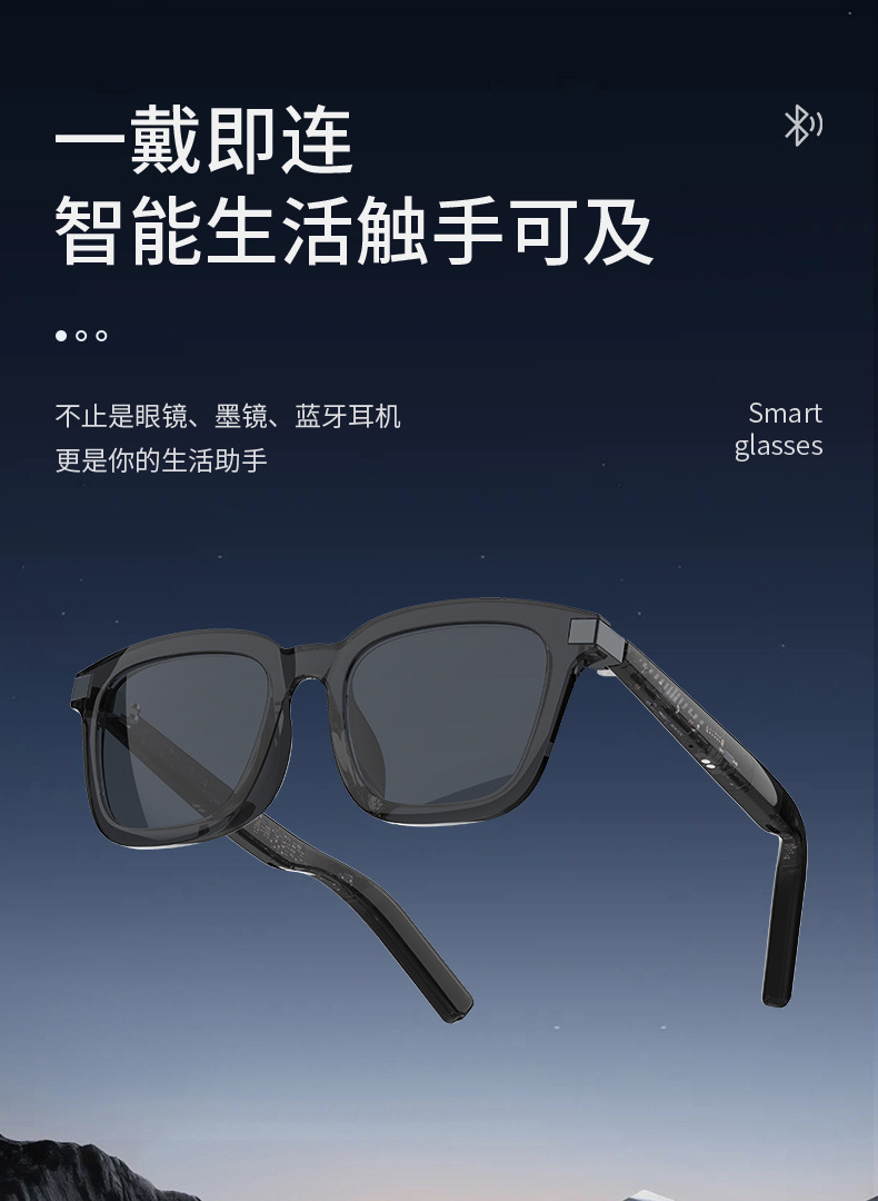 智能眼镜 AI 翻译眼镜 100 多种语言实时翻译 蓝牙音乐 内置麦克