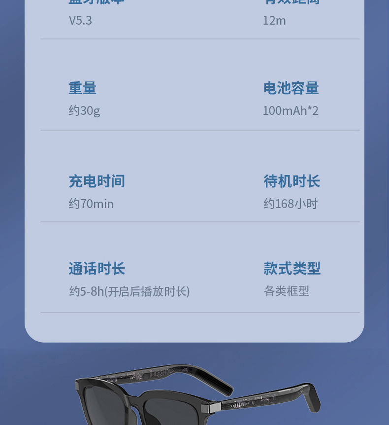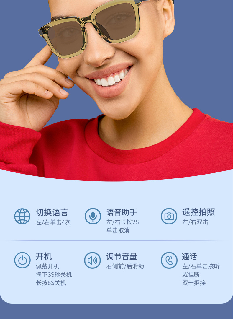 智能眼镜 AI 翻译眼镜 100 多种语言实时翻译 蓝牙音乐 内置麦克 English | 投诉
