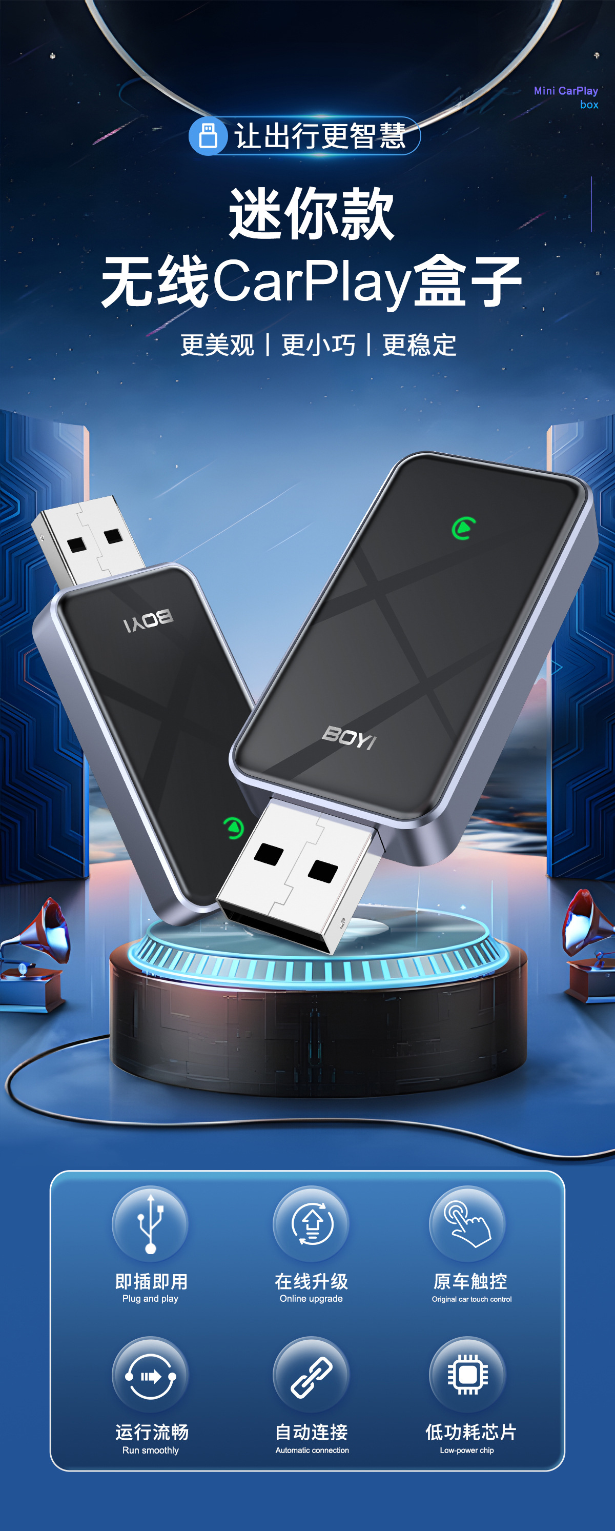 安卓盒子无线carplay U盘式汽车导航互联有线转无线CarPlay English | 投诉