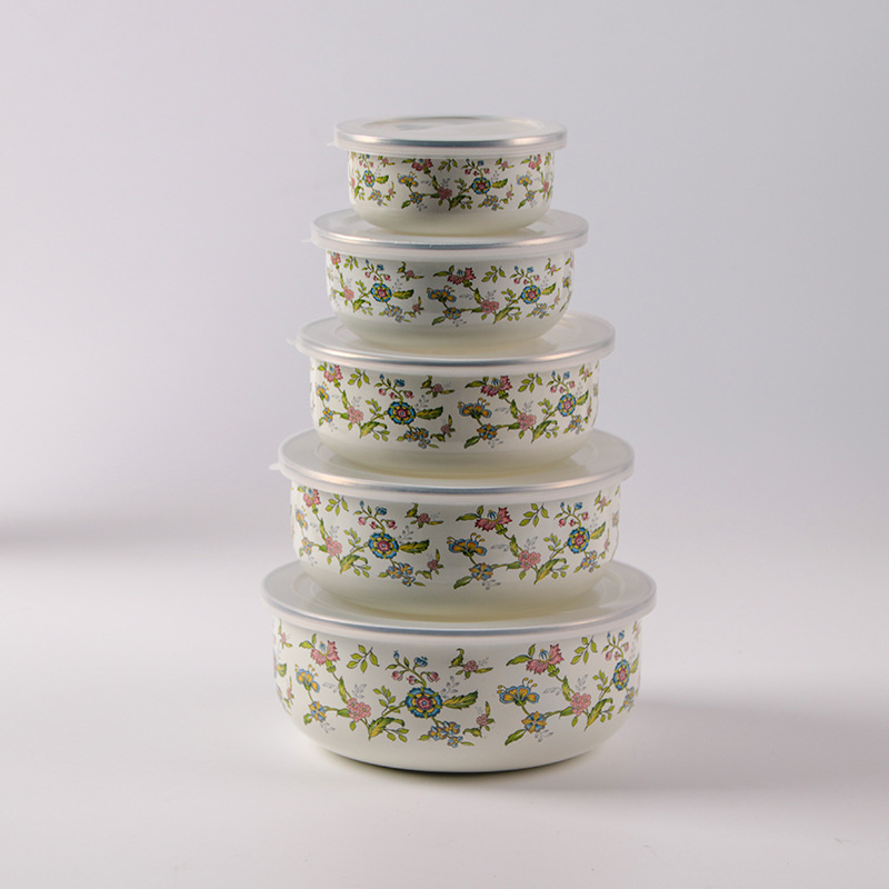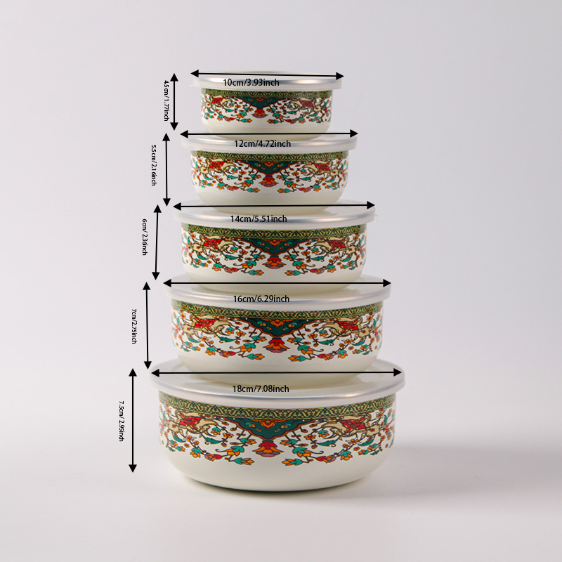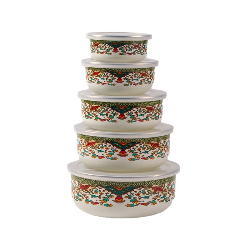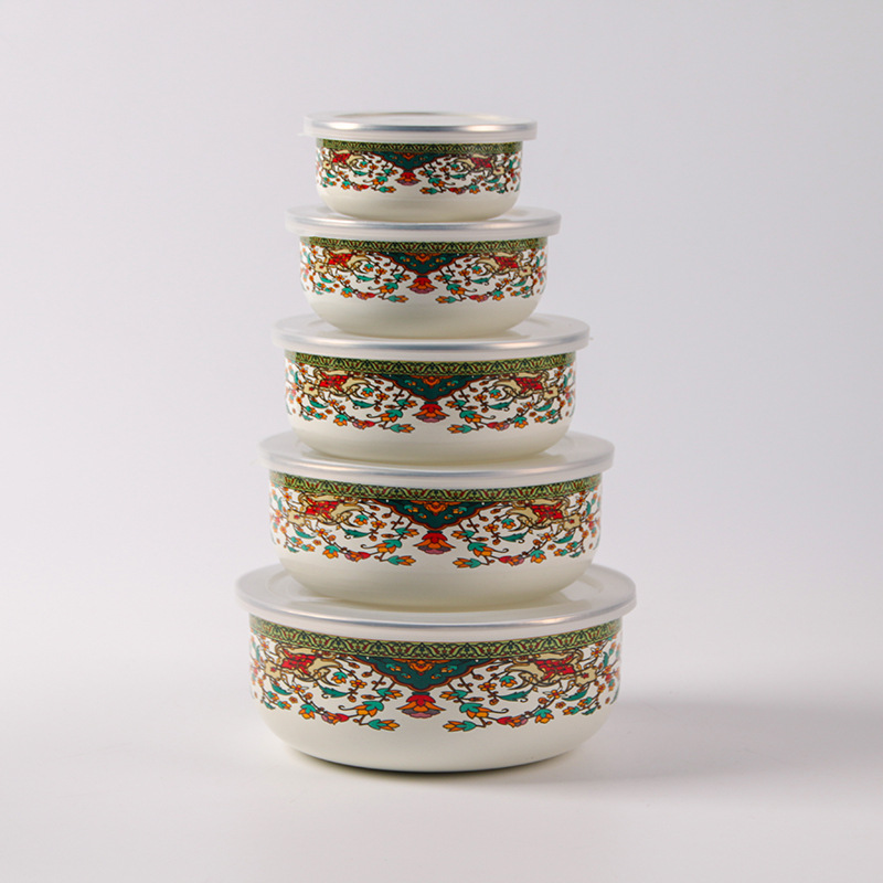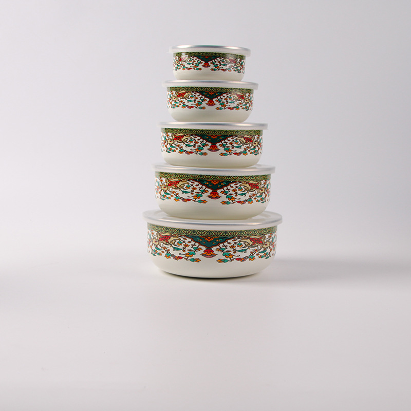 搪瓷餐具饭菜保鲜碗套碗广告礼品批发俄罗斯花加厚冰碗汤碗五件套