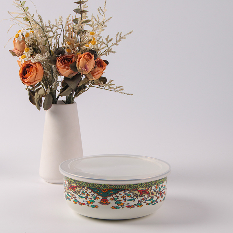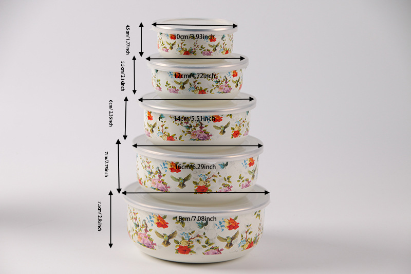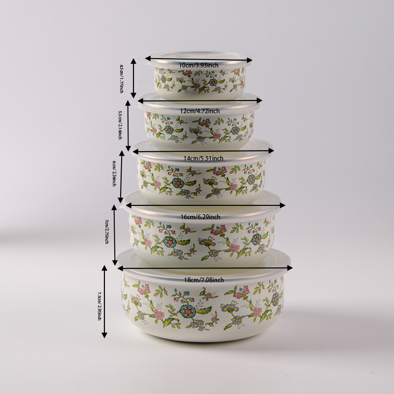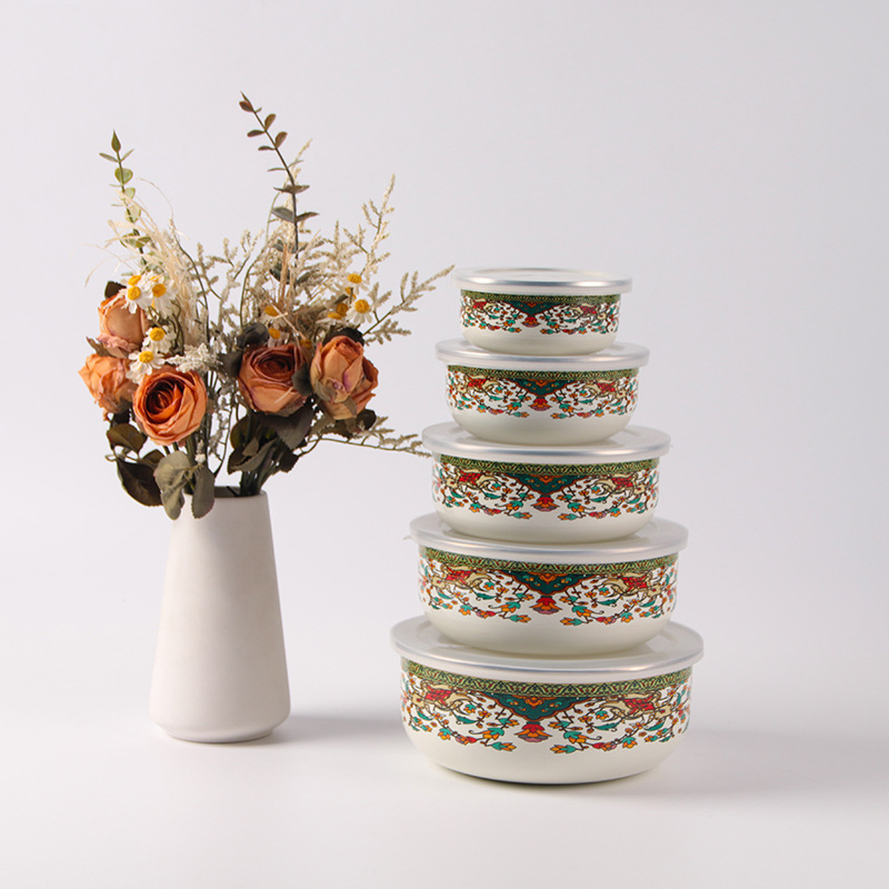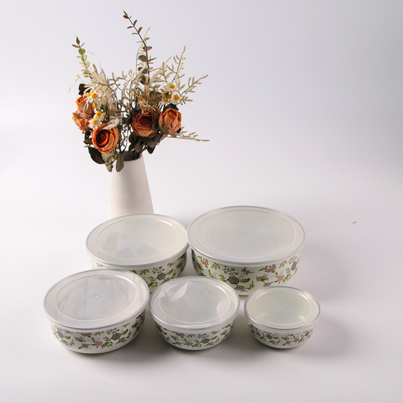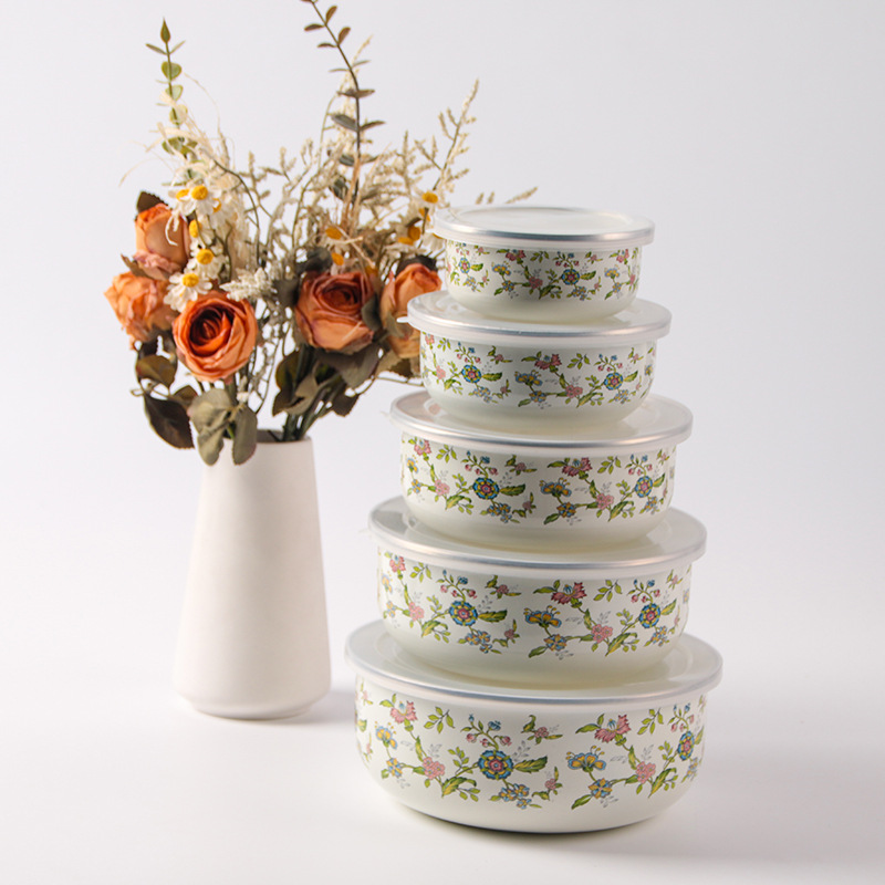 搪瓷餐具饭菜保鲜碗套碗广告礼品批发俄罗斯花加厚冰碗汤碗五件套