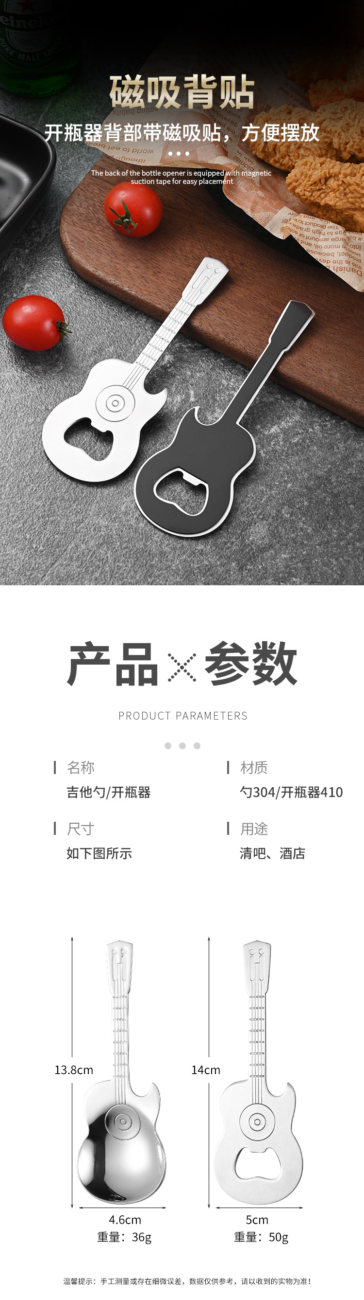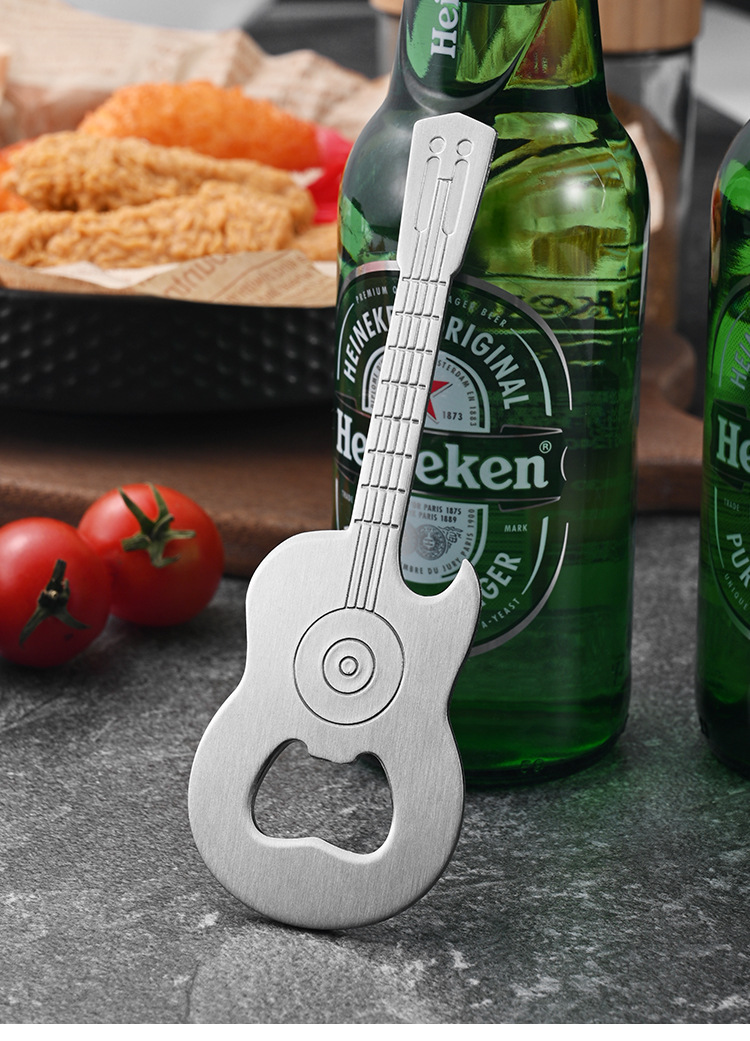 亚马逊304不锈钢贝斯勺子吉他啤酒开瓶器起盖器瓶起子冰箱贴磁吸