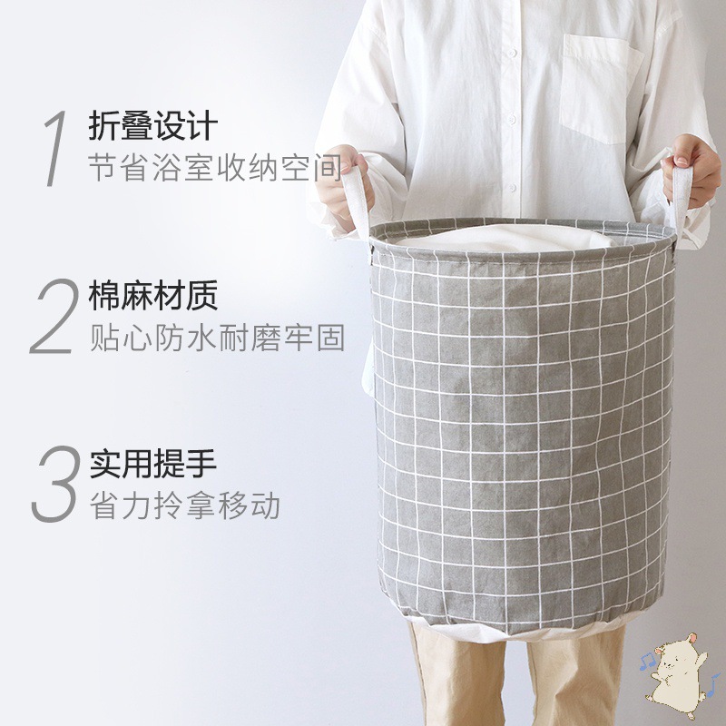 脏衣篮布艺圆形玩具收纳筐家用棉麻折叠脏衣篓防水格子收纳脏衣桶 投诉