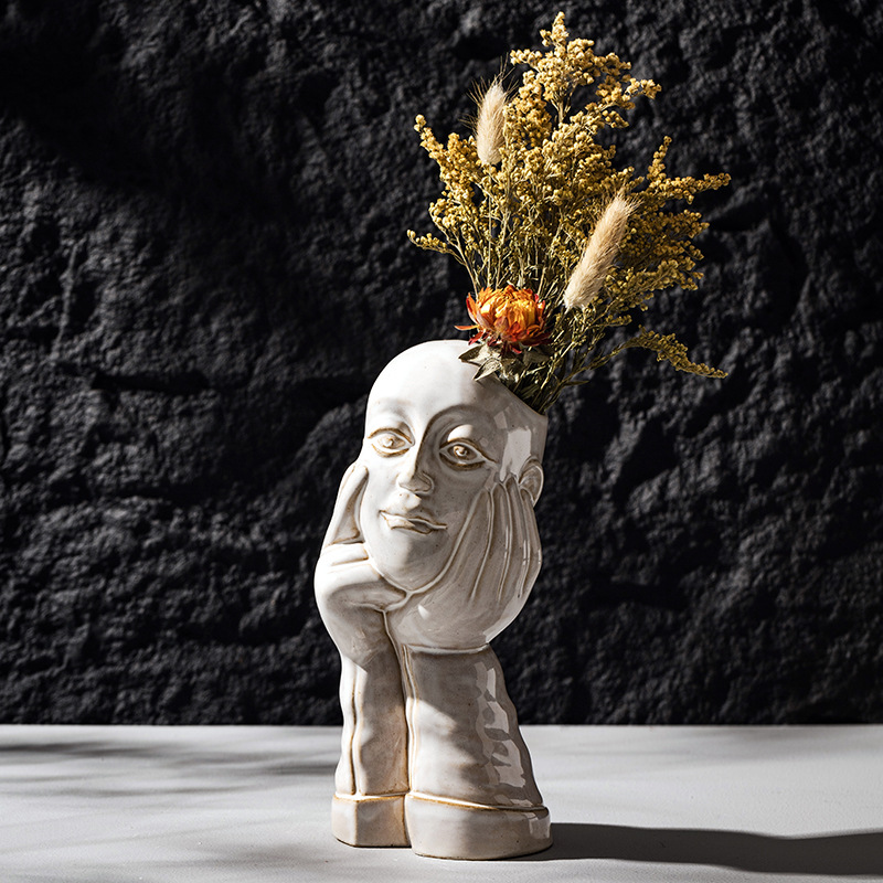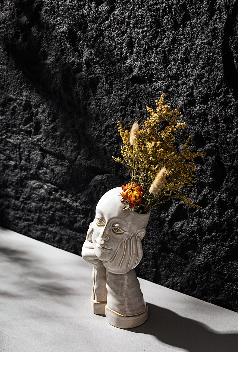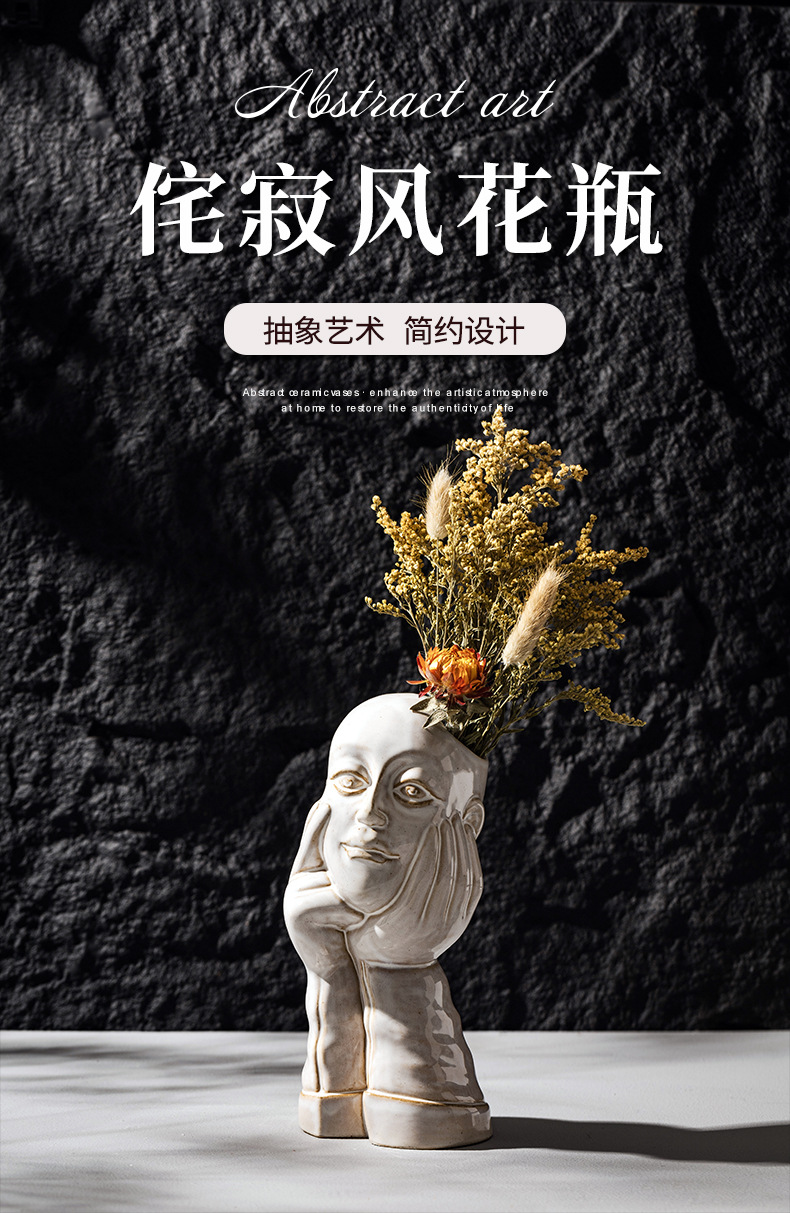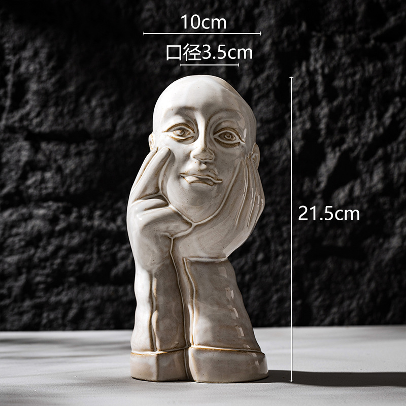 北欧创意人体陶瓷花瓶白色简约家居摆件ins风欧式轻奢高级感跨境