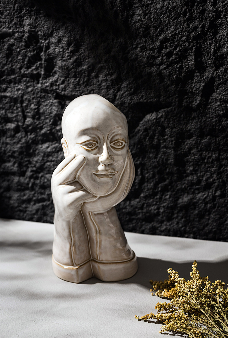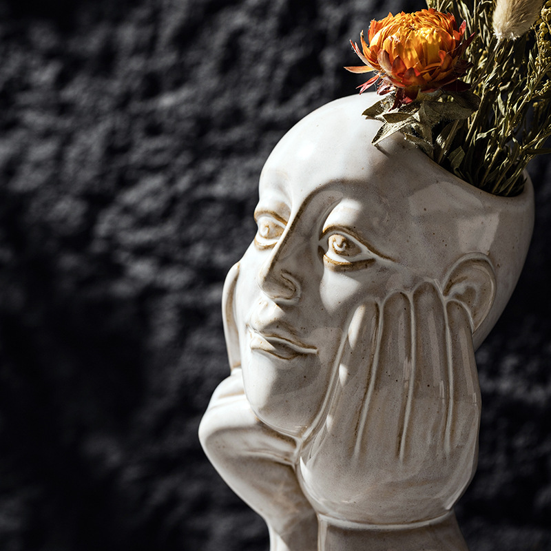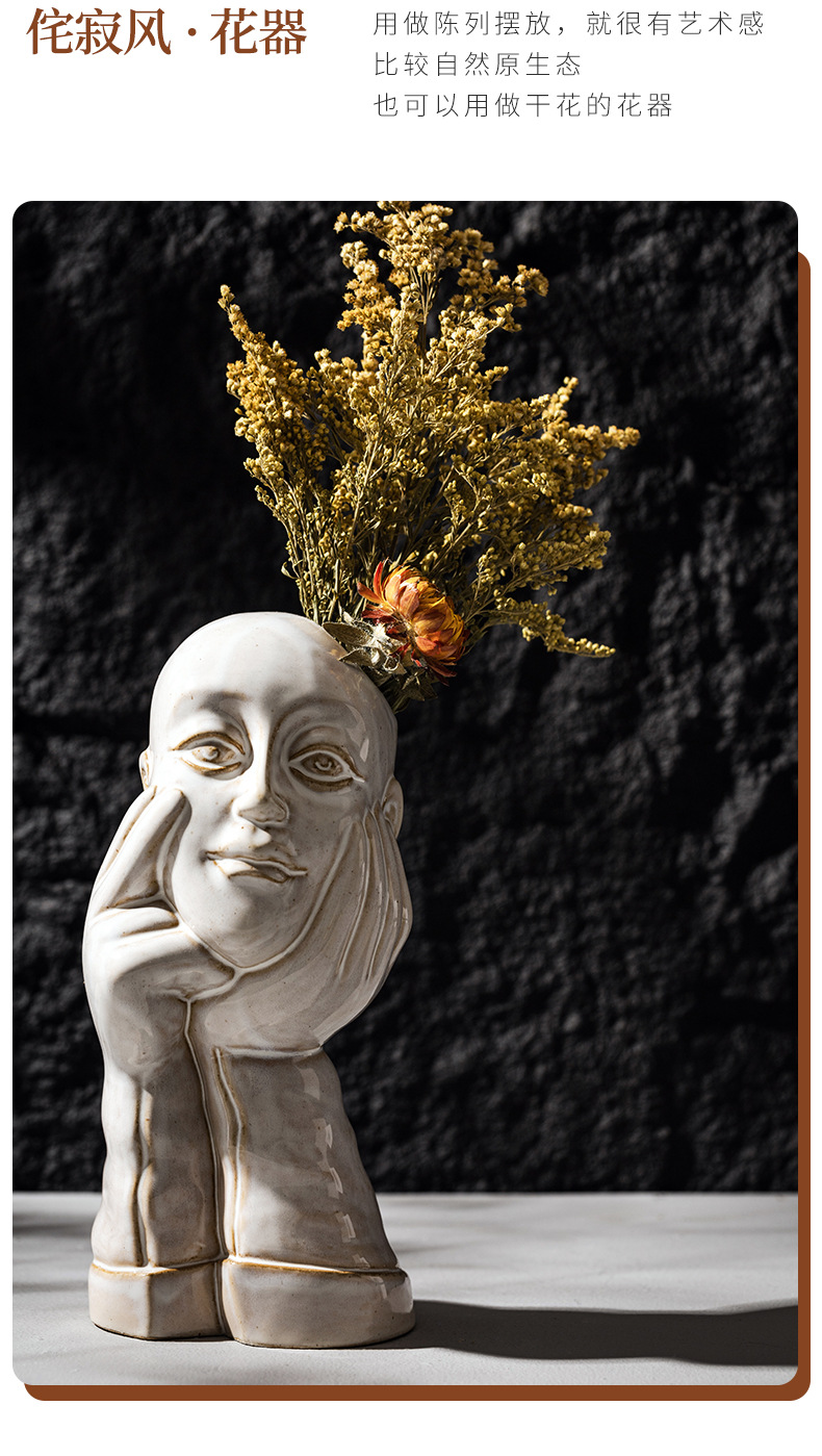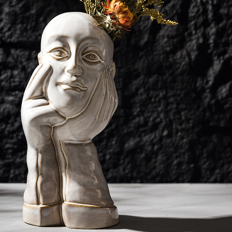 北欧创意人体陶瓷花瓶白色简约家居摆件ins风欧式轻奢高级感跨境