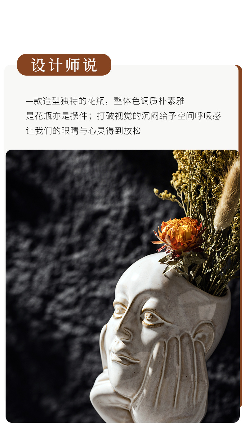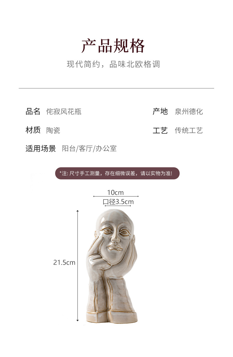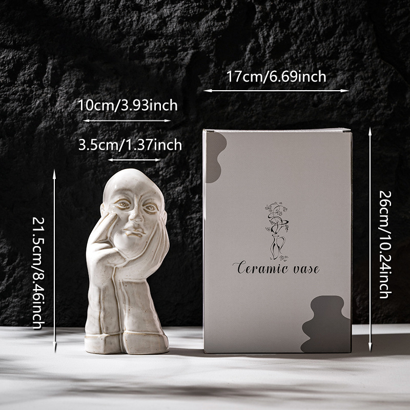 北欧创意人体陶瓷花瓶白色简约家居摆件ins风欧式轻奢高级感跨境 投诉