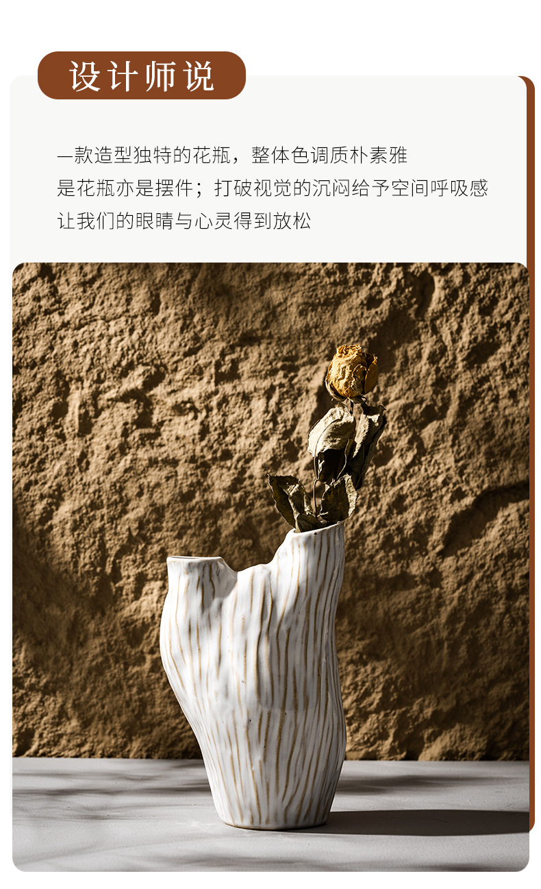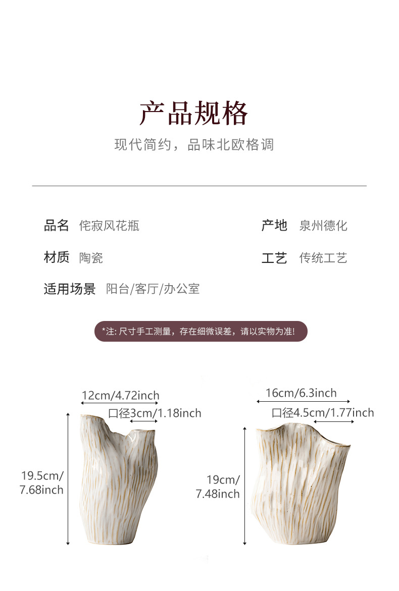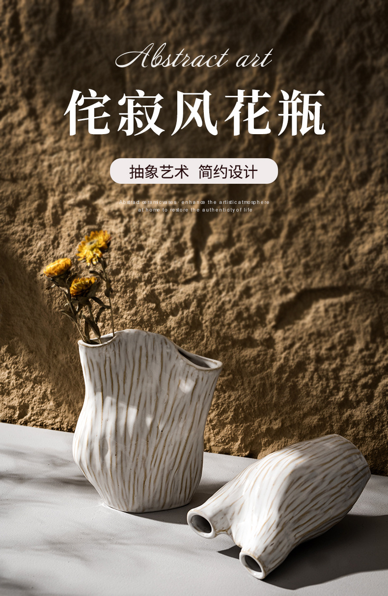 北欧现代ins风白色陶瓷侘寂风花瓶客厅插花创意家居装饰艺术摆件