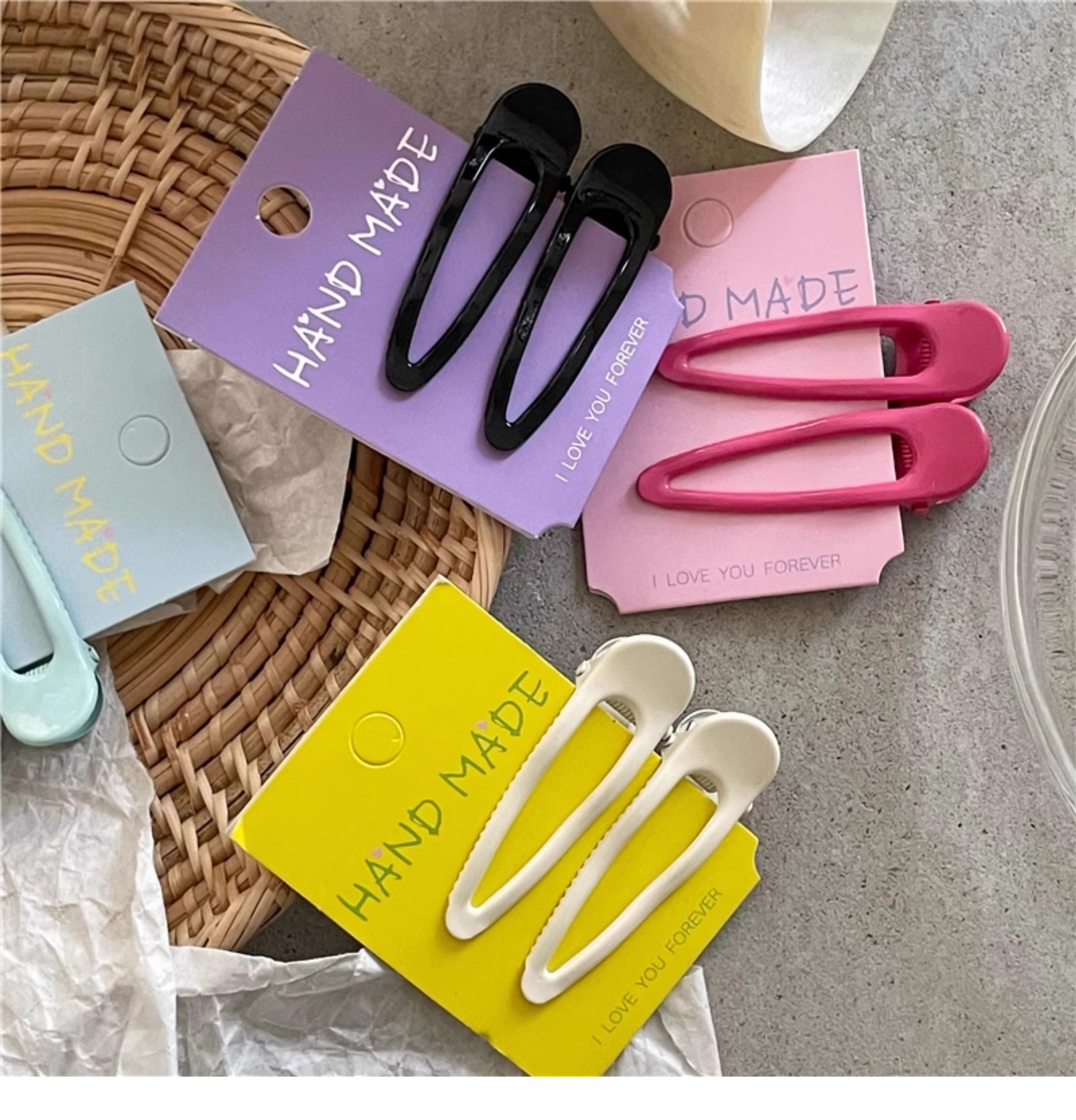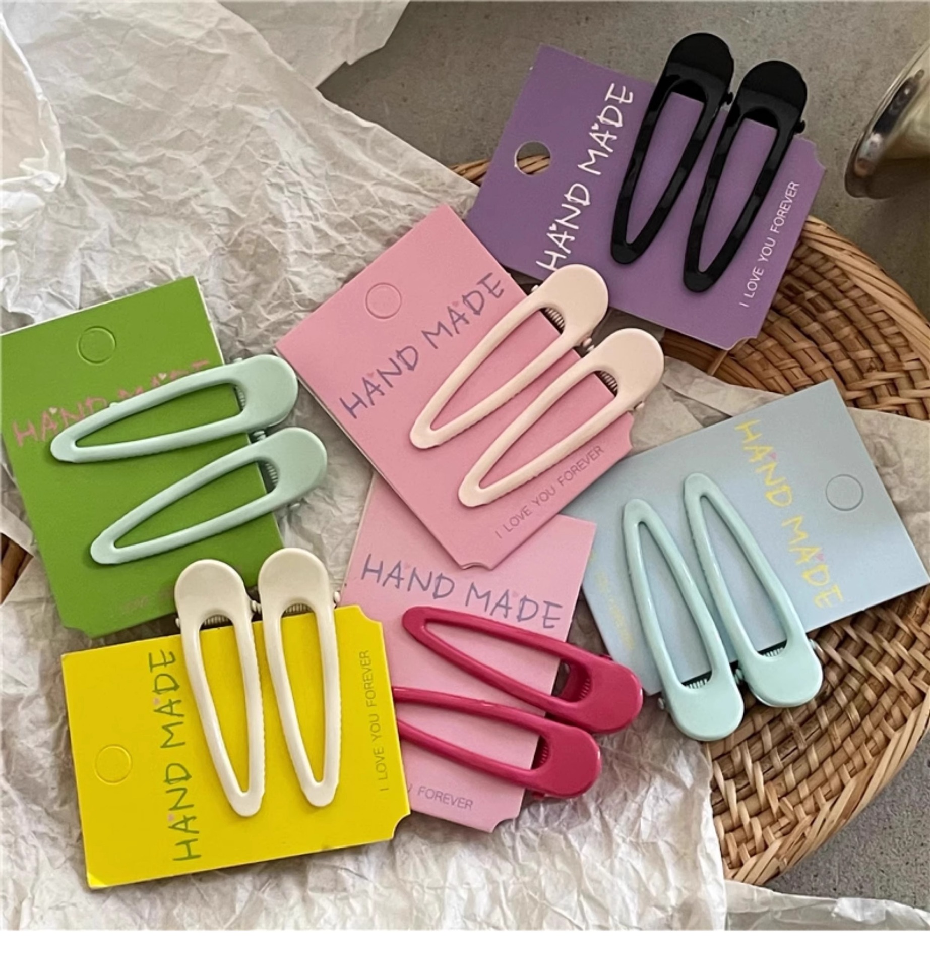 彩色镂空水滴发夹前额刘海侧边夹子头饰发卡韩版可爱鸭嘴夹发饰女 投诉