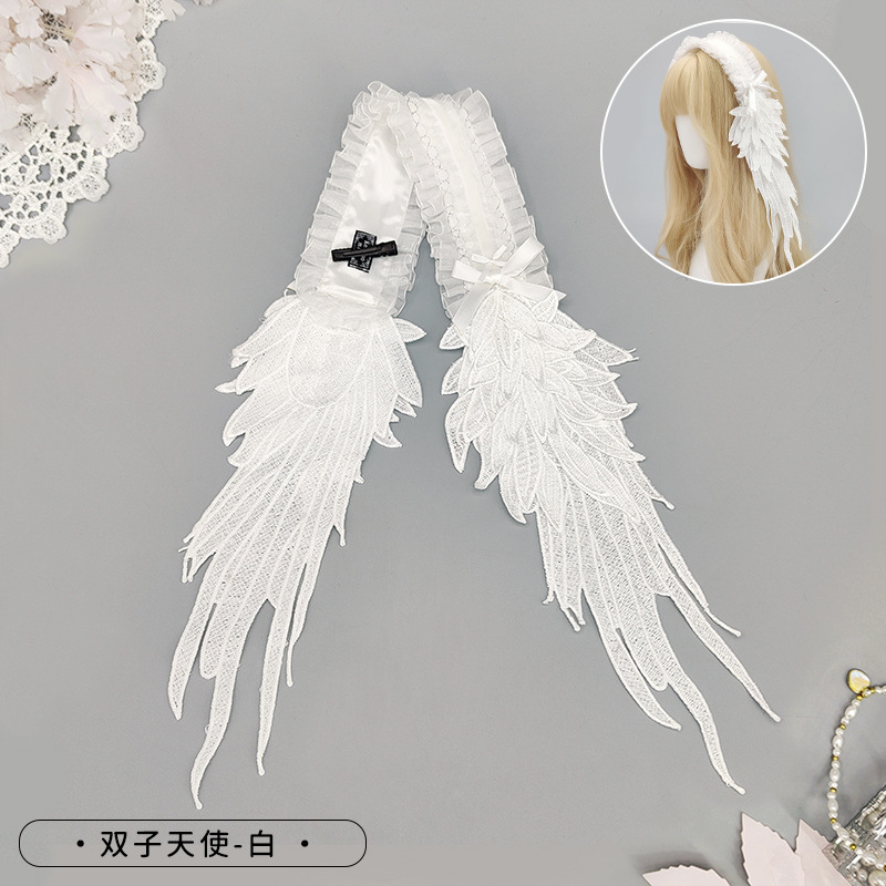 暗黑哥特风Lolita发饰天使翅膀蕾丝花边头饰地雷系洛丽塔翅膀发带