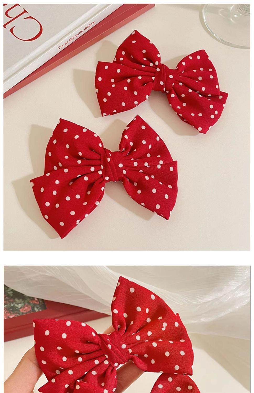 品牌: 无品牌 新奇特: 新鲜出炉 风格: 甜美 材质: 其他 价格区间: 1.00-9.99元 发饰分类: 对夹 镶嵌材质: 未镶嵌 成色: 全新 颜色分类: #绝美出片-波点红色蝴蝶结1个,#绝美出 重量: 0.1 kg/件