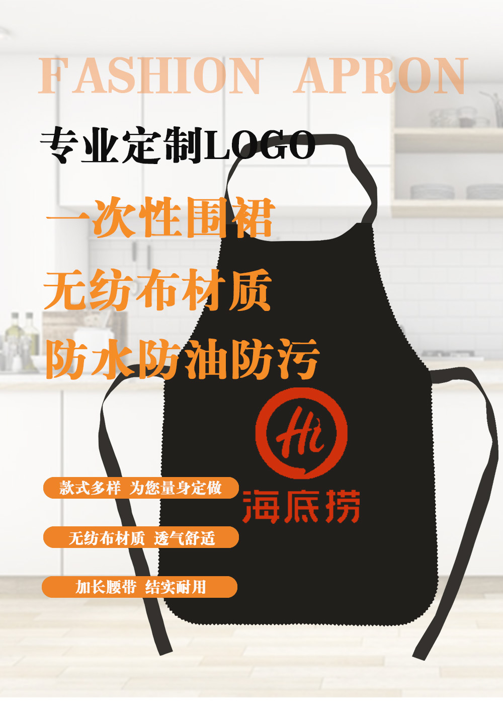 一次性围裙 定制LOGO火锅烧烤小龙虾店无纺布成人儿童 围兜罩 投诉