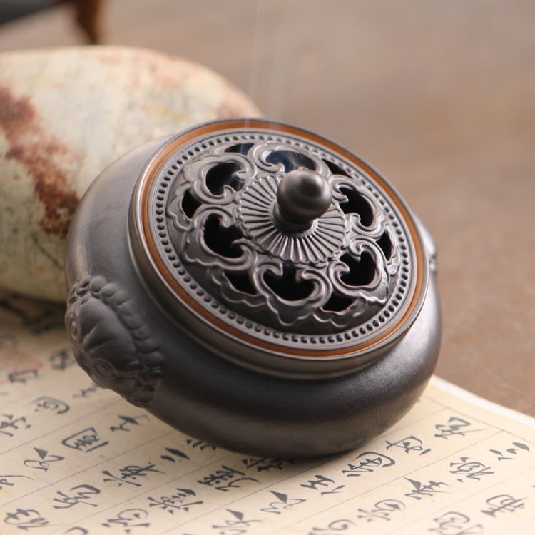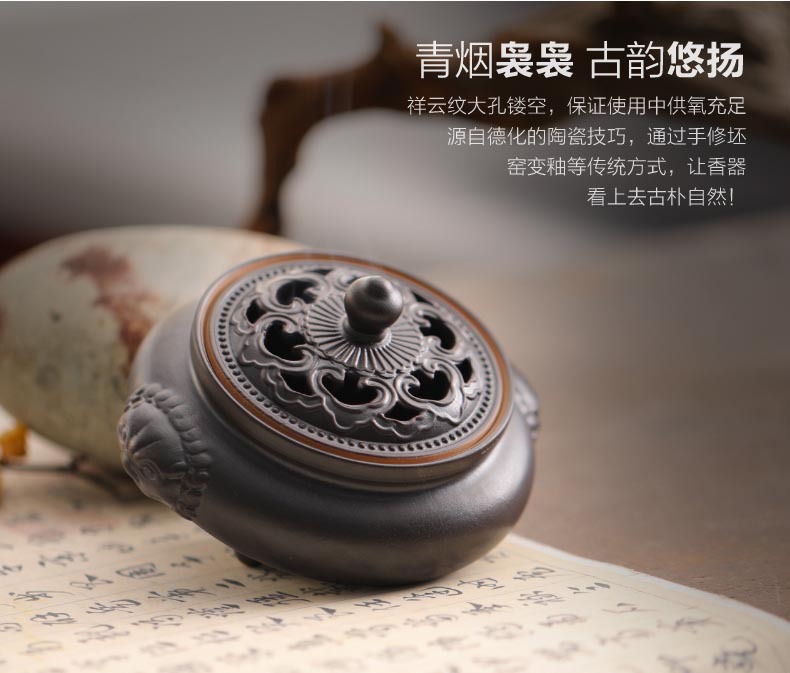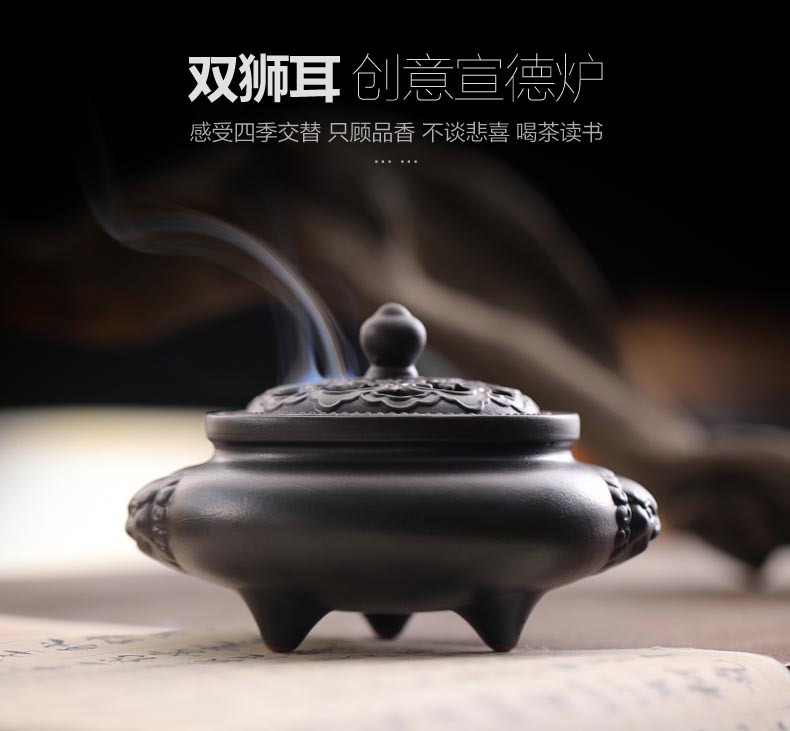 双耳狮小香炉家用居室檀香炉 室内茶道仿古盘香炉供佛熏香香薰炉 投诉