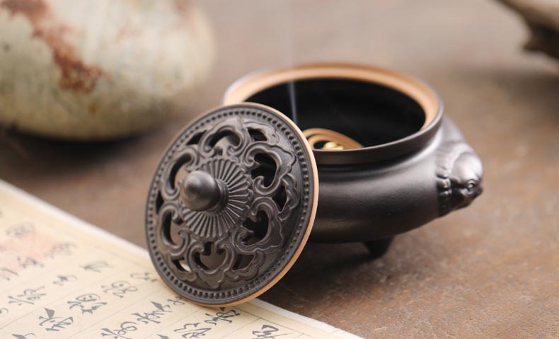 双耳狮小香炉家用居室檀香炉 室内茶道仿古盘香炉供佛熏香香薰炉