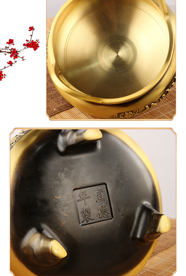 材质: 铜 货号: 355 品牌: 自主 类别: 香炉 适用场景: 家居 包装: PP袋独立包装 是否专利货源: 否 是否属于礼品: 否 风格: 中式 重量: 1.0 kg/个