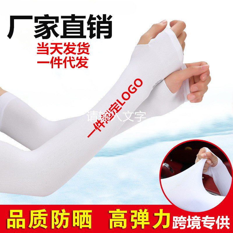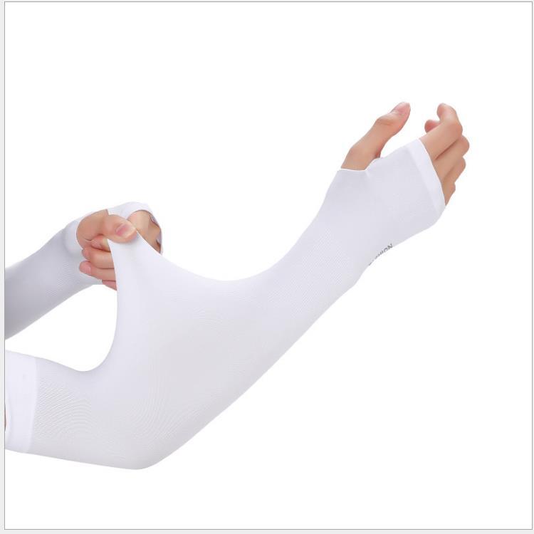 白色冰丝防晒袖套夏日户外出行防紫外线冰袖骑行锦纶透气直筒袖套 English | 投诉