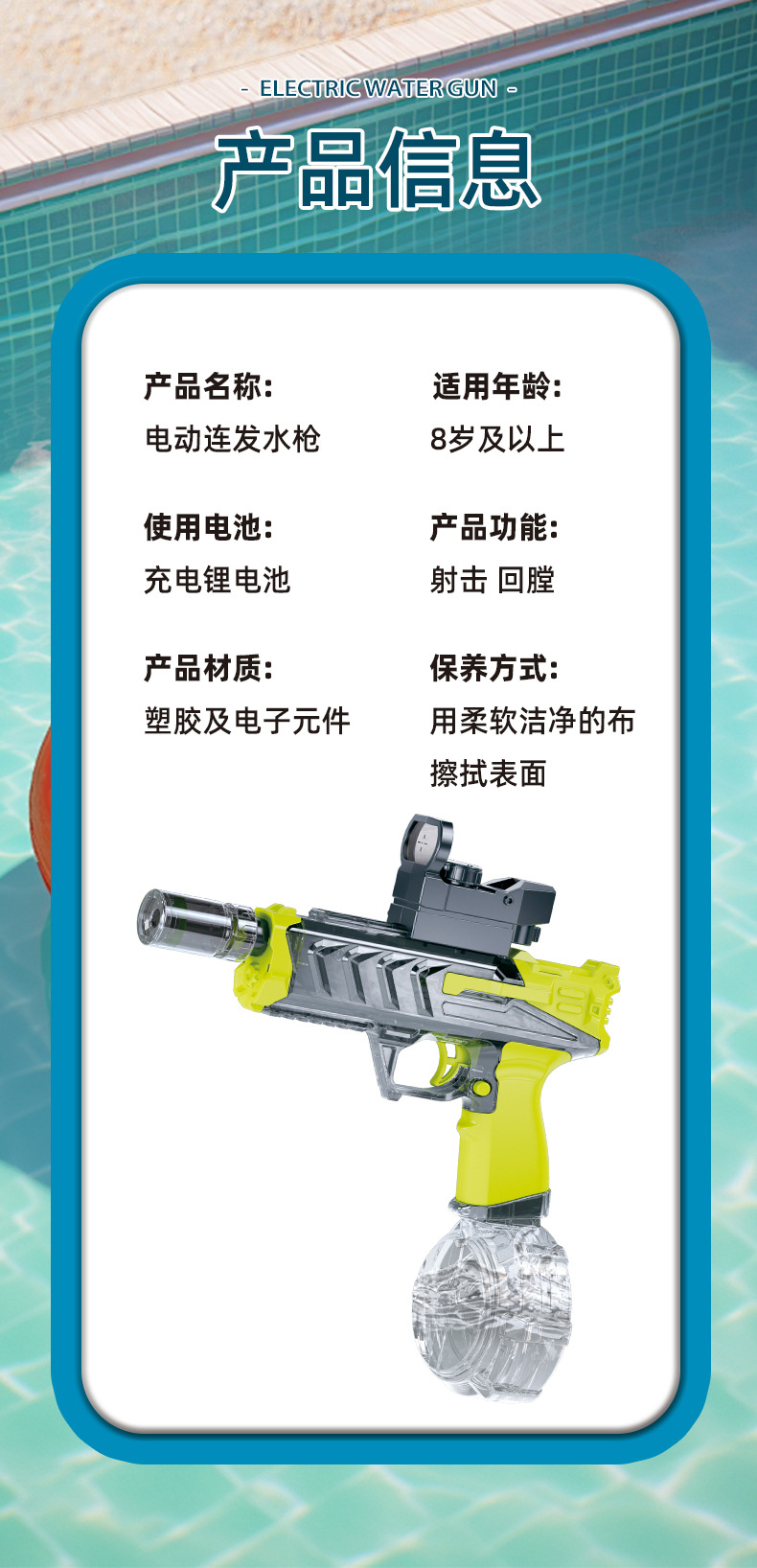 儿童电动连发冰龙水枪大容量冰鼠水枪手自一体联动戏水玩具男孩 投诉