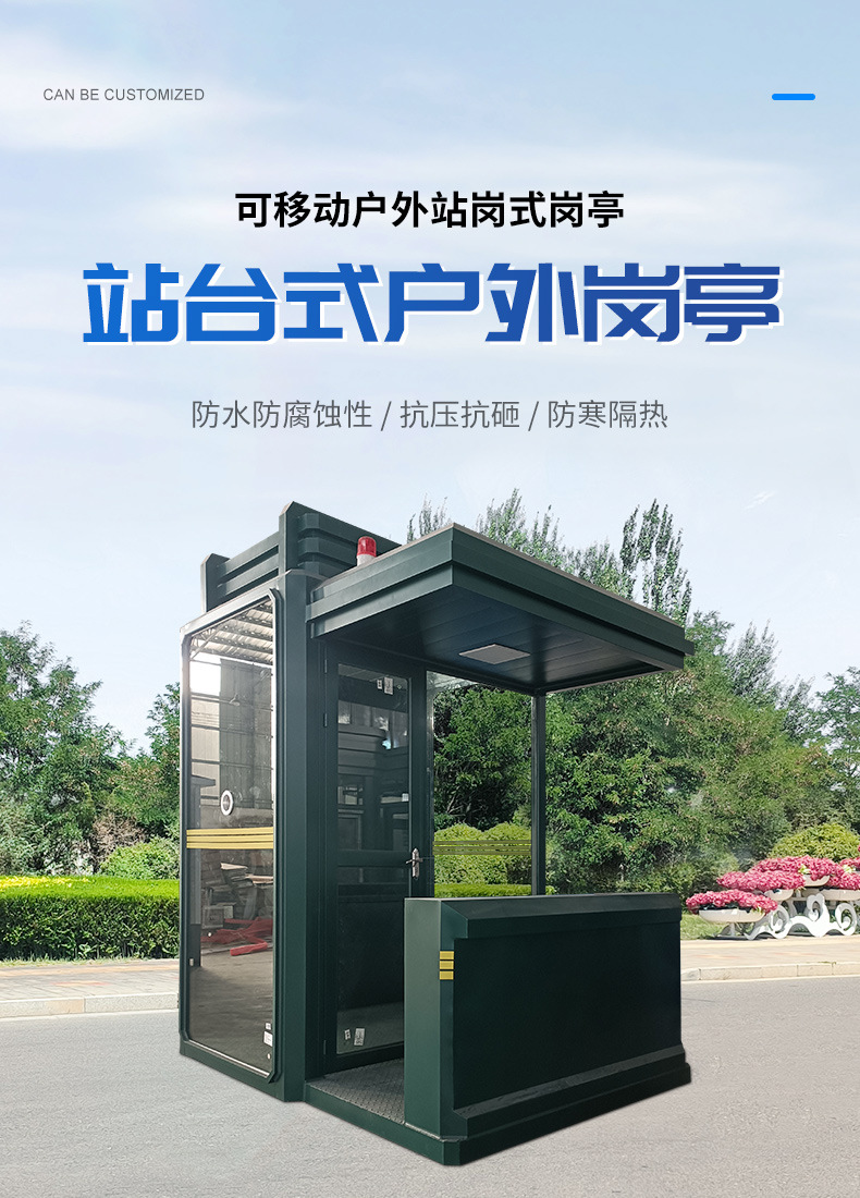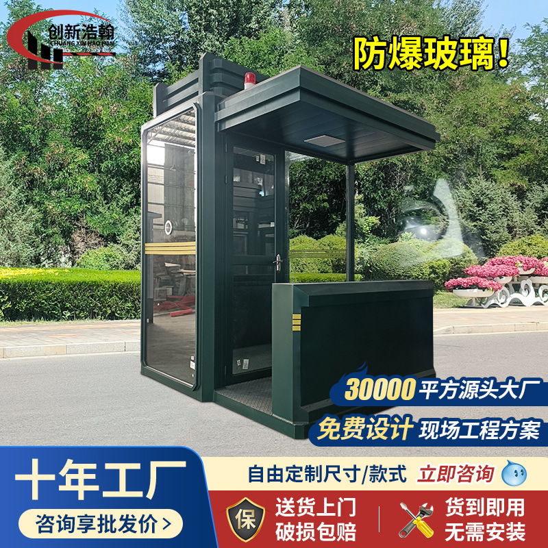 广东生产厂家营区防爆玻璃岗亭迷彩保安亭营区值班执勤哨兵站岗亭