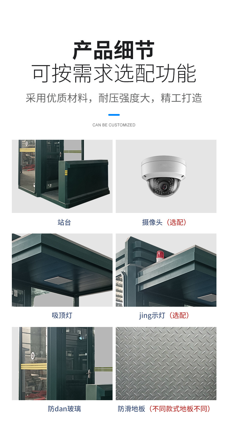 型号: 执勤岗亭 货号: 执勤岗亭 材质: 真石漆 产地/品牌: 佛山市 种类: 岗亭 规格: 军绿色款式1,迷彩款式2,绿色款式3 品牌: 浩翰 是否跨境出口专供货源: 否 是否外贸: 可运输到外国 电压: 220V 重量: 0.5 kg/平方米