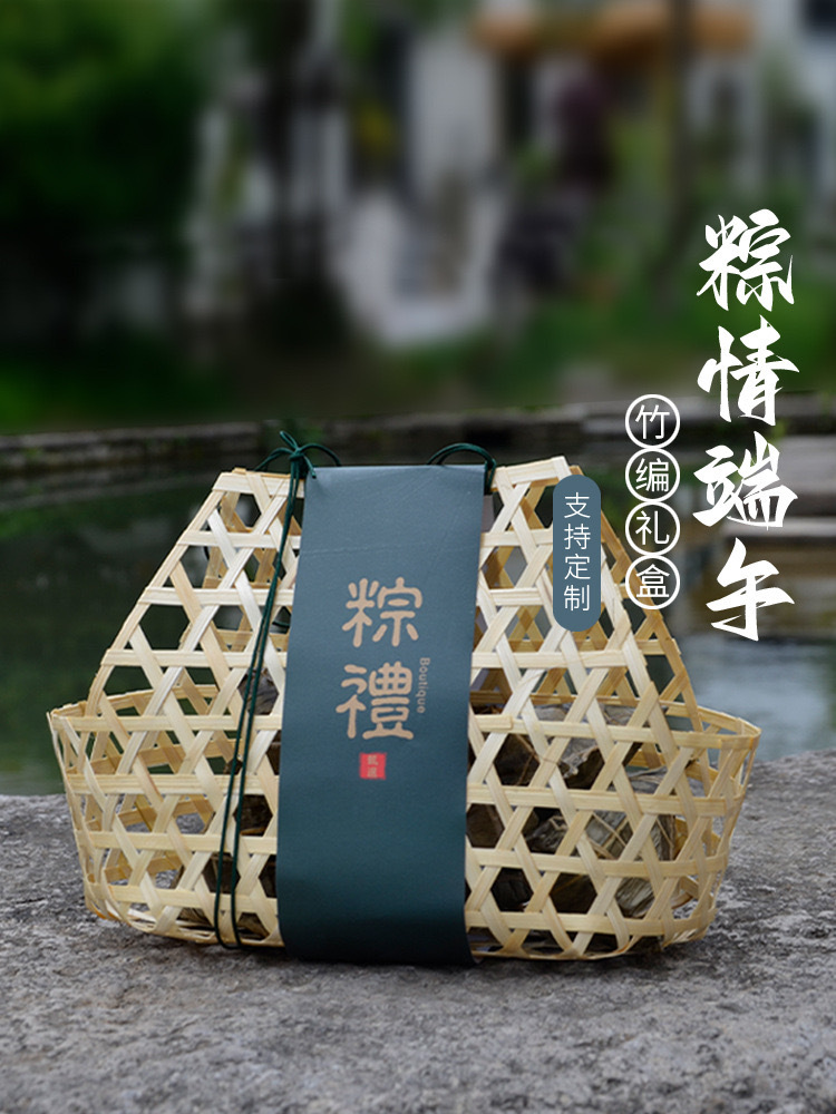 厂家礼品包装竹篮 中秋月饼礼品盒 端午粽子收纳竹盒子竹编手提篮
