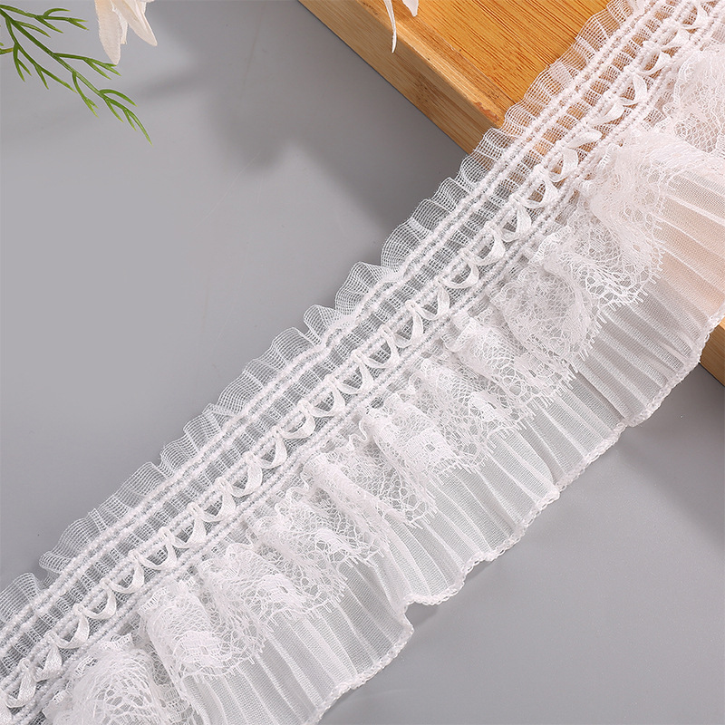 8cm双层弹力褶皱风琴百褶蕾丝花边DIY百搭服装领口裙边辅料批发