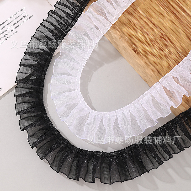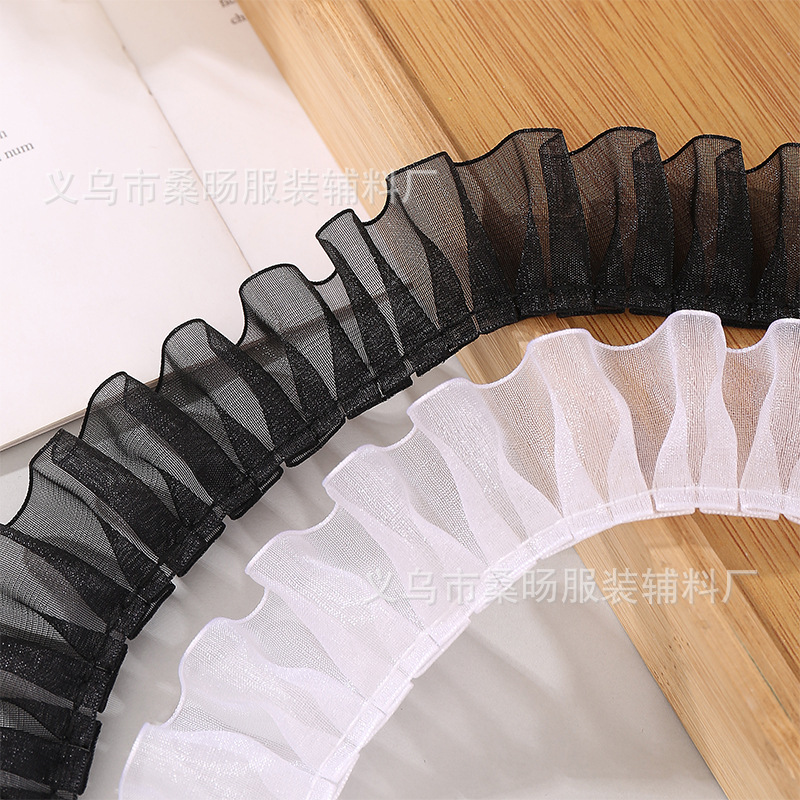 3cm褶皱雪纱带花边手工diy服装裙边蕾丝木耳打折花边辅料荷叶边