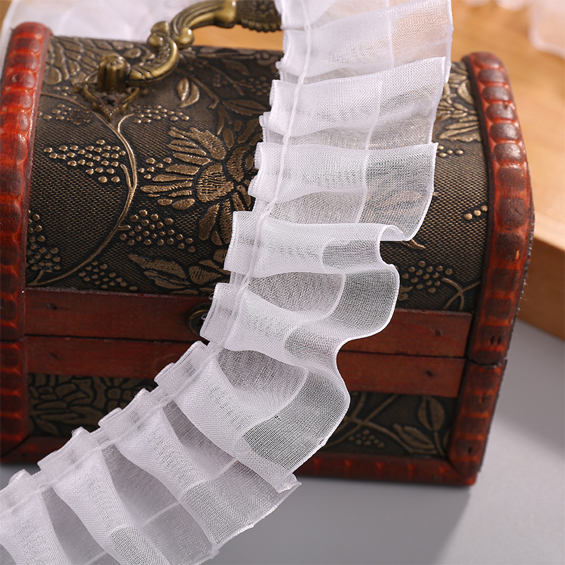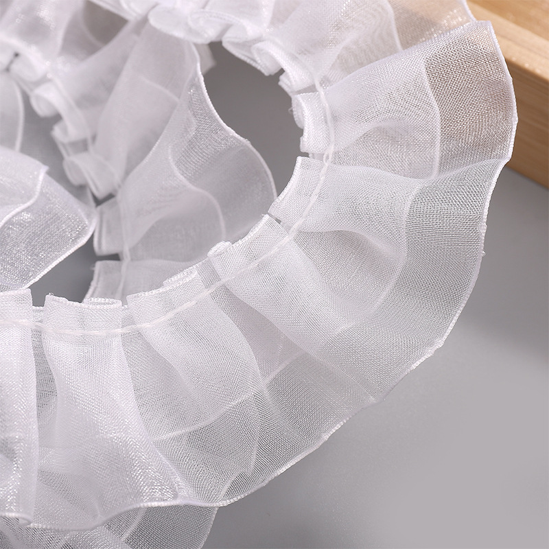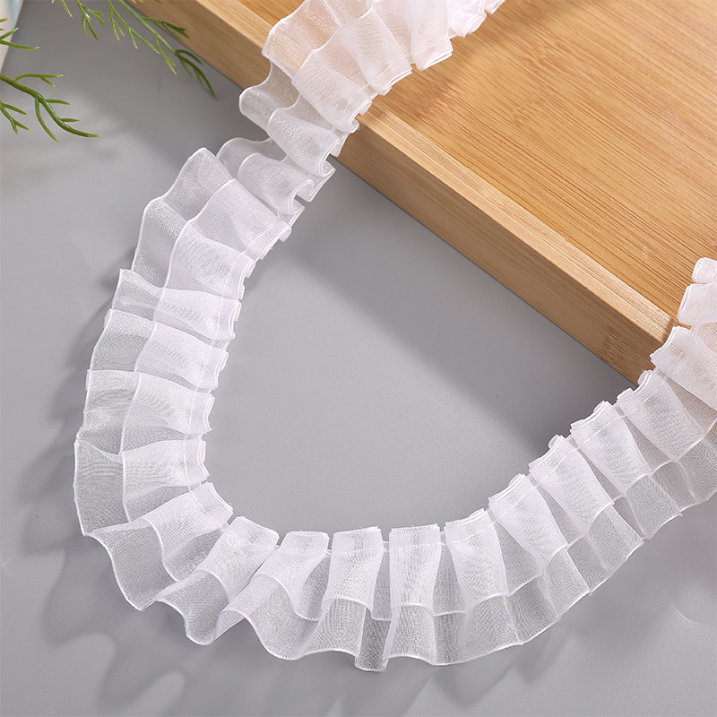 4cm双层涤纶白色褶皱雪纺纱DIY手工服饰家纺裙摆配饰花边辅料批发 投诉