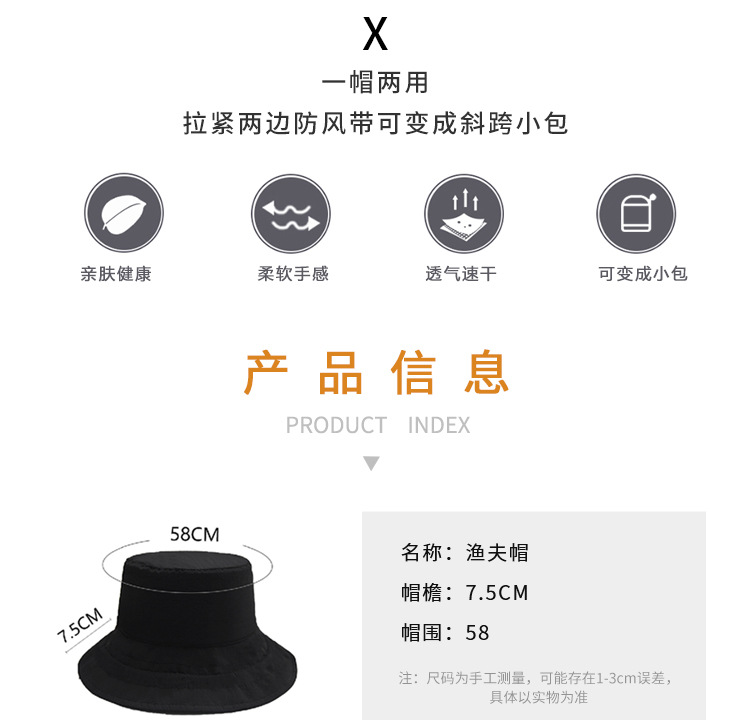 可收纳速干渔夫帽子时尚户外防晒遮阳折叠女包斜挎高级感双面盆帽 English | 投诉